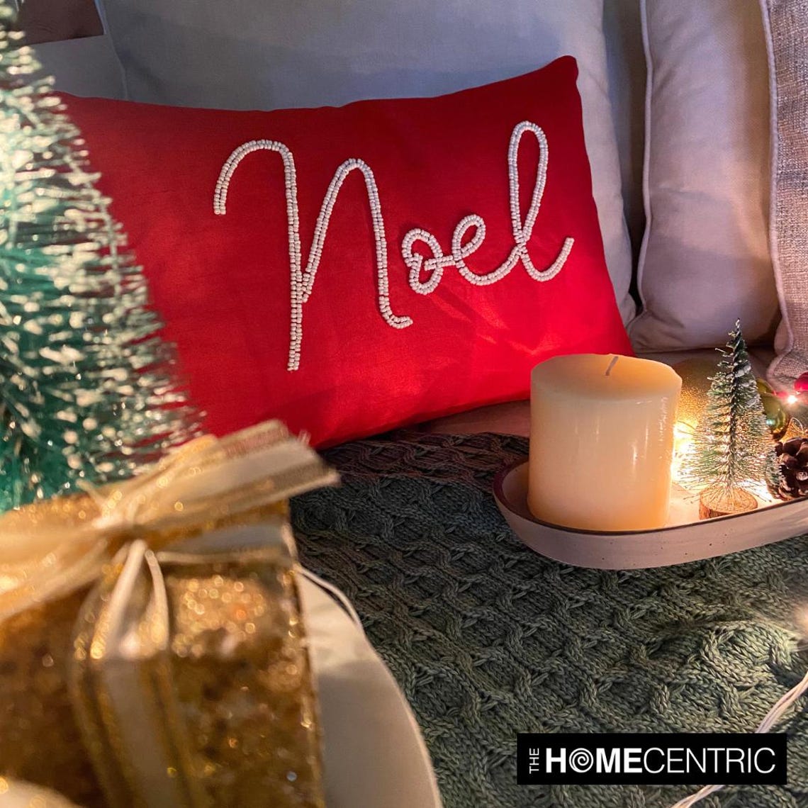 Bring luxury and holiday cheer into your home with the 'Noel' Lumbar Pillow Cover from The HomeCentric. Made from red art silk, this oblong cushion cover features stunning white beaded embroidery, spelling out “Noel,” adding both festive elegance and a modern touch to your Christmas décor.