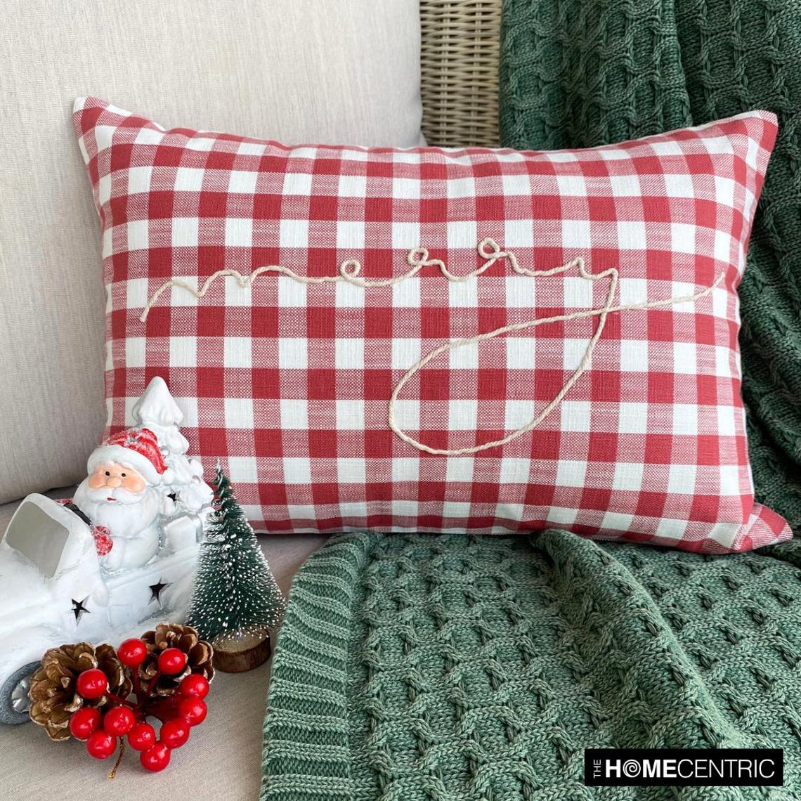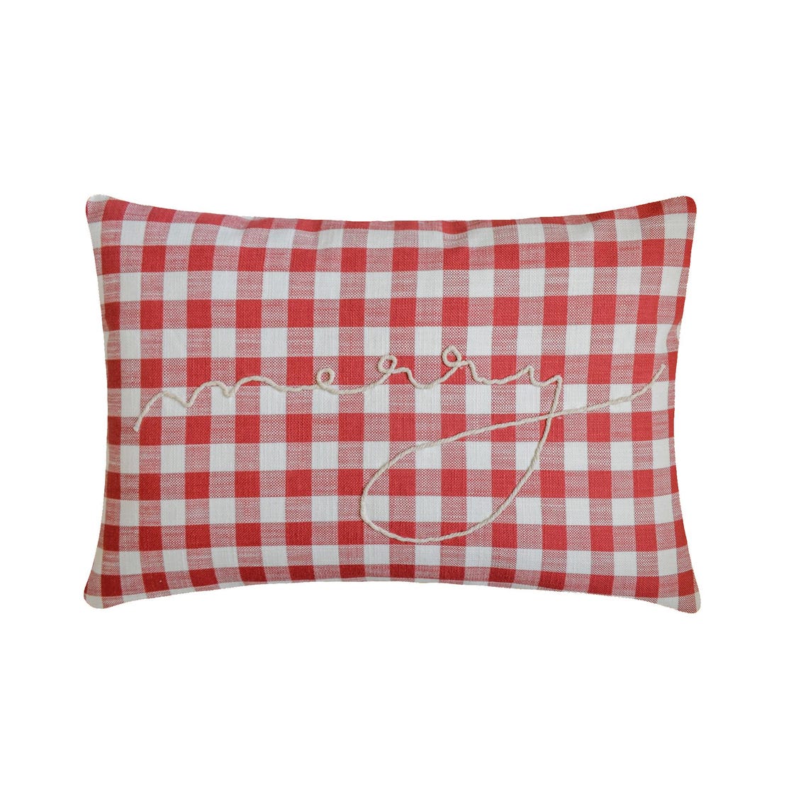 Celebrate the holidays with the Holiday Merry Pillow Cover from The HomeCentric – a festive design blending classic red buffalo checks with delicate embroidery.