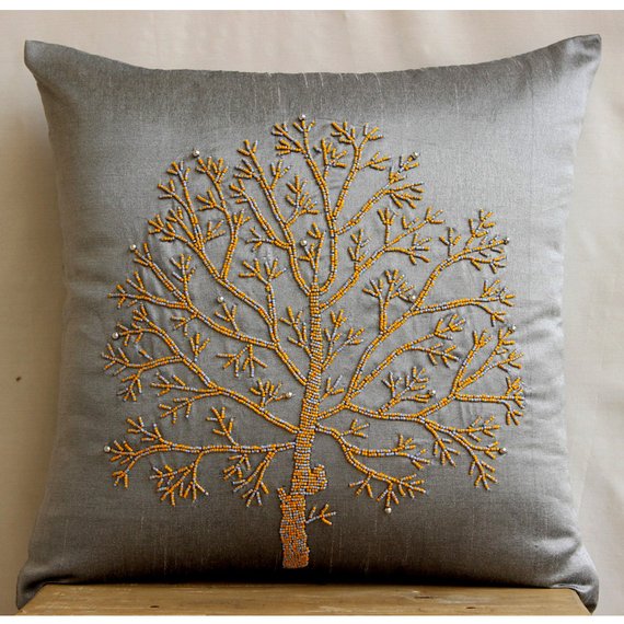 Inspired by nature, the Tree Of Faith is a beaded pillow cover designed keeping nature and nature lovers in mind. 100% handmade, this silk throw pillow cover designed with art silk dupioni fabric is the picture of elegance.