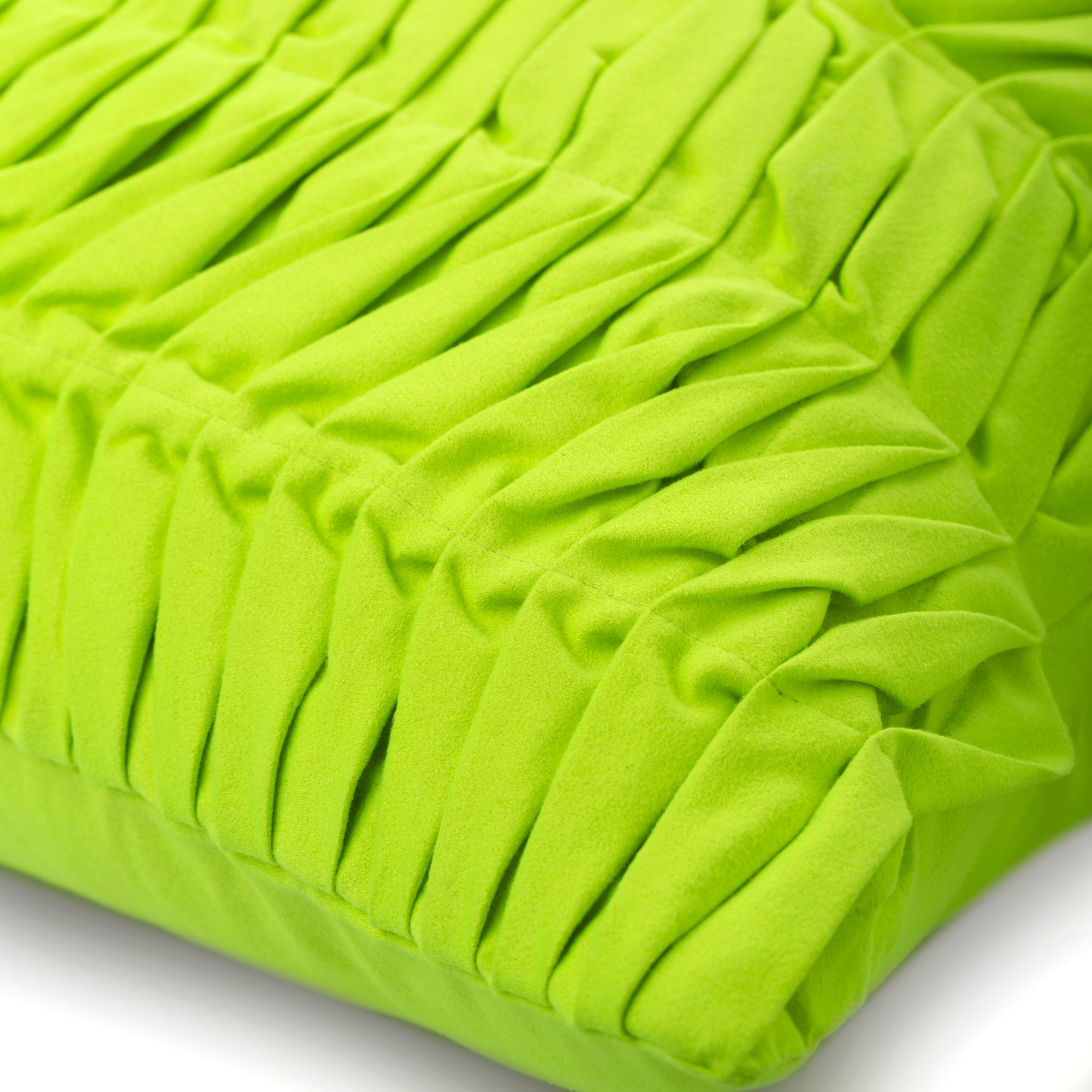 Fabric: Faux Suede Material Used: Fabric Fabric Color: Lime Green Pattern: Solid Color Style: Modern Back of the cover: Plain Lime Green Faux Suede Fabric For Insert Removal: Concealed flap covered zipper on the back for easy insertion and removal of inserts |