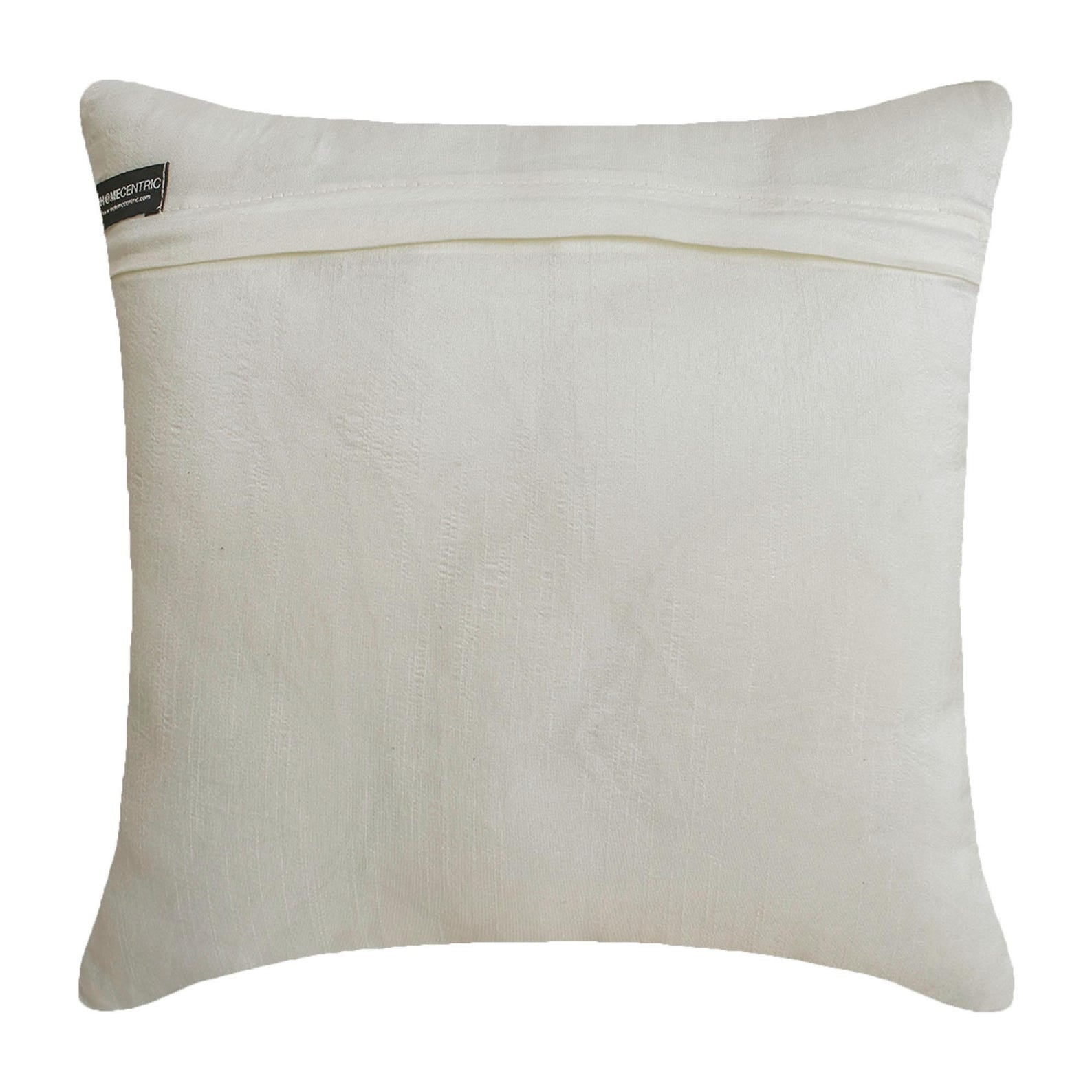 Inspired from nature, the Gold N Ivory Blooms is a beautiful pillow cover that will create a striking effect when placed with neutral-colored pillows. It is embellished with ribbon embroidery, which resembles flowers. These flowers on the pillow come in different sizes. The design will ooze plenty of charm when placed on the couch, bed, or a vintage chair. | The throw pillow cover is made from fine quality art silk. This material is light and airy. The combination of art silk and the embroidered ribbon flowers is a match made in heaven. This designer pillow cover is handmade in India by the best artisans and comes in 8 exciting colors. |