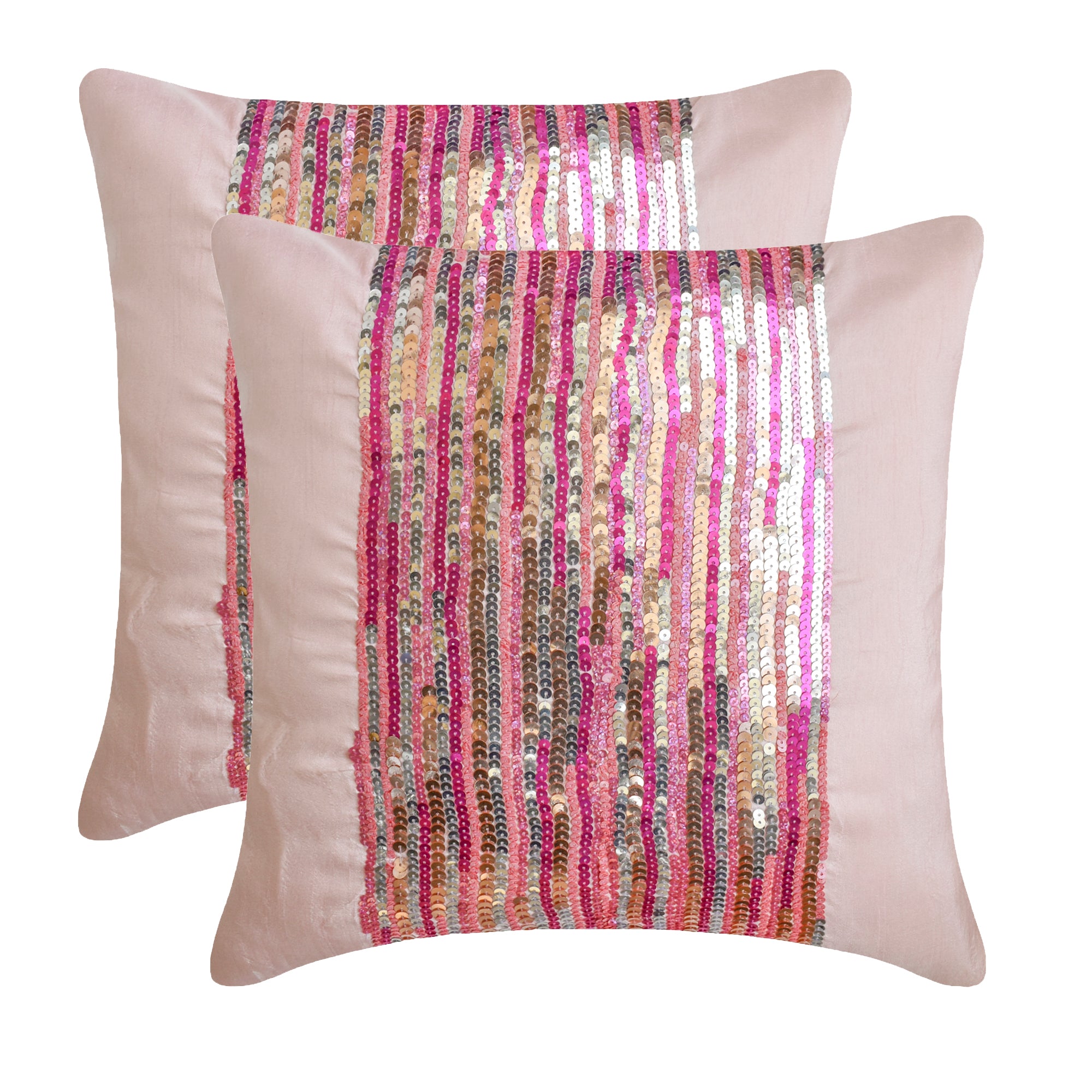 Fabric: Art Silk Material Used: Sequins Fabric Color: Pink Pattern: Striped Style: Modern Back of the cover: Plain Pink Art Silk Fabric For Insert Removal: Concealed flap covered zipper on the back for easy insertion and removal of inserts |