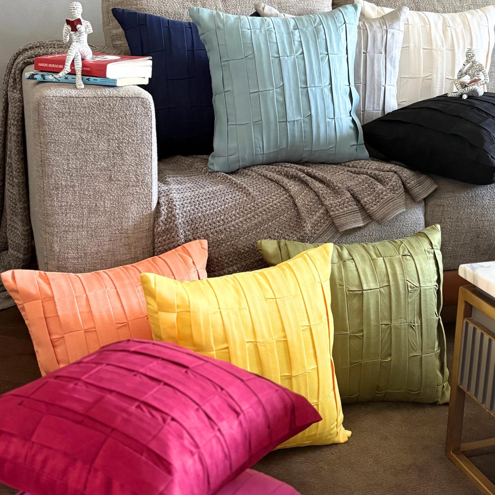 When it comes to fuchsia pink pillow covers, you would love the Pink Love Tune. This faux suede pillow cover has a pleated design, but the pleats have alternating stitches across the entire pattern, giving this solid color pillow cover, a unique and irresistible look. Get this solid throw pillow cover and watch it transform your room instantly, giving your interiors a much-needed freshness and color. This modern decorative pillow cover has a matching plain fabric in faux suede on the back, along with a hidden-flap covered zipper for easy insertion and removal of inserts.