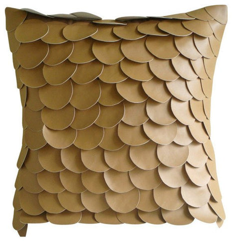 Alternating Gold - Brown Faux Leather Throw Pillow Cover