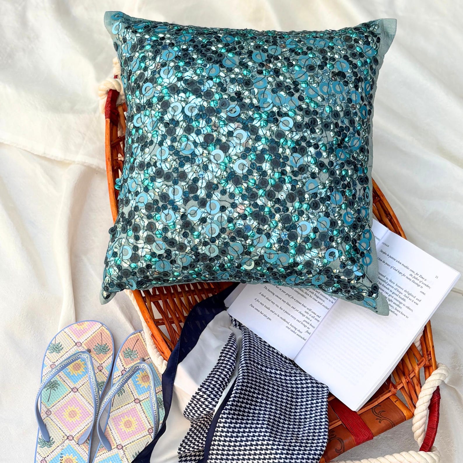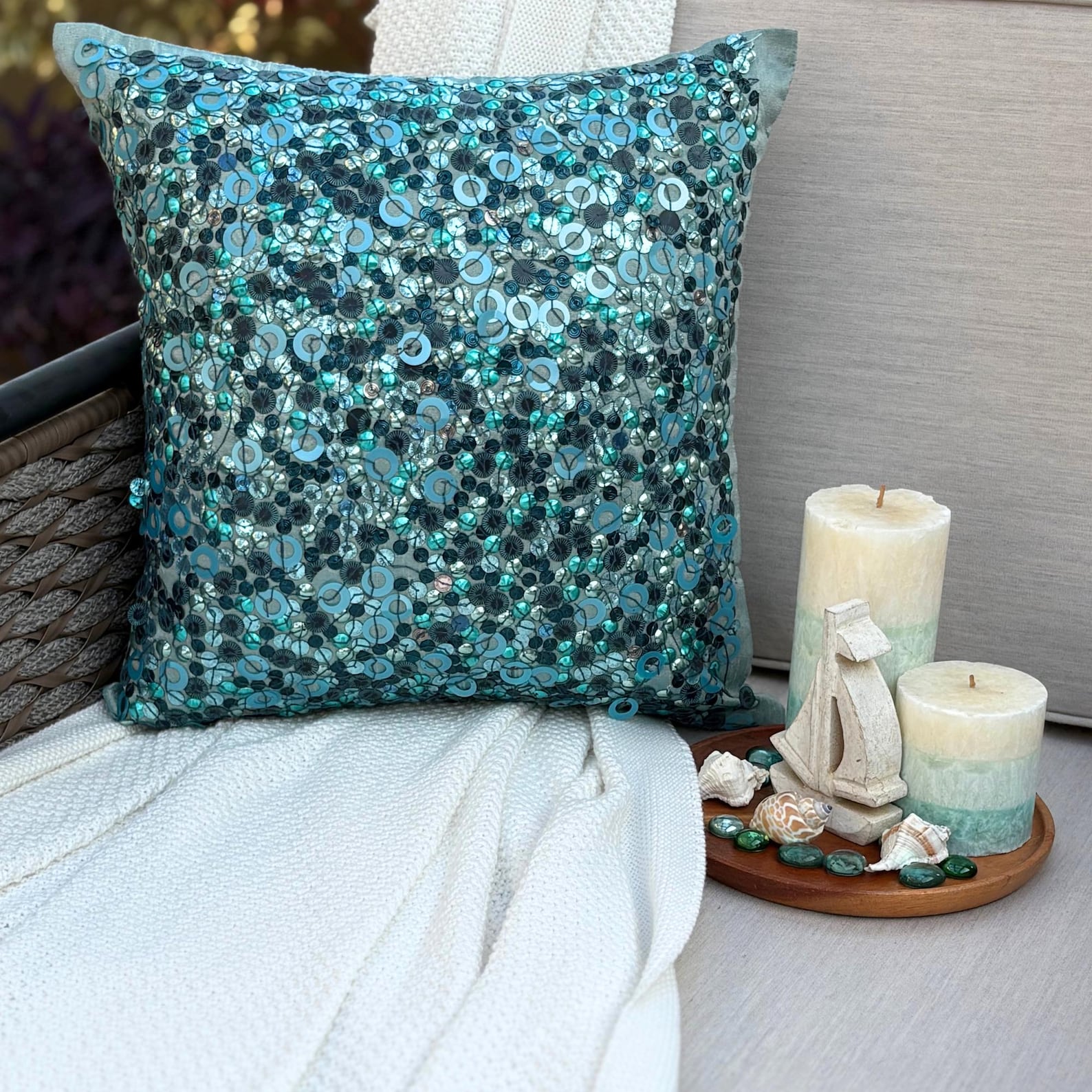 Sea The Dream, a blue art silk embroidered pillow cover, is the perfect accent piece for your interiors.