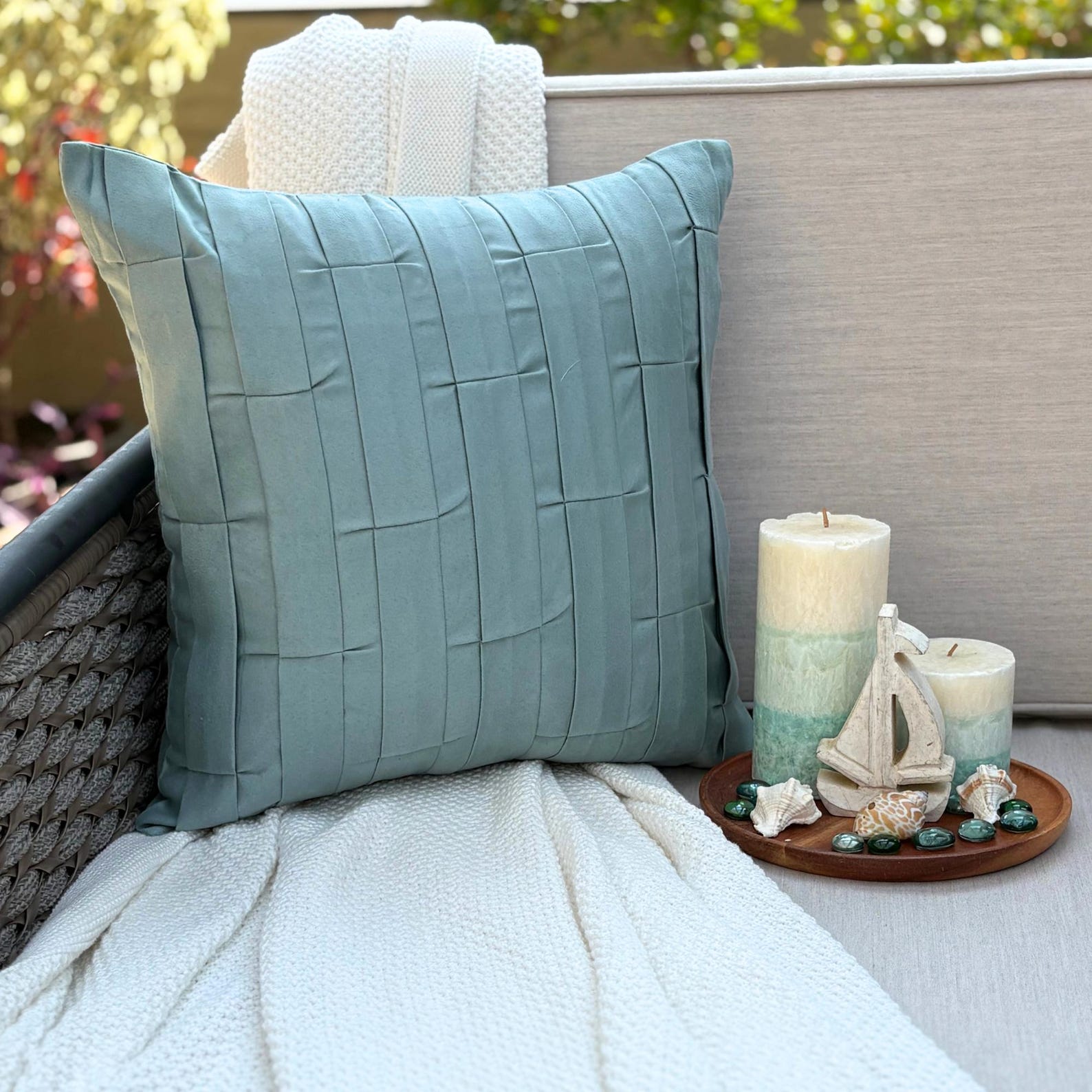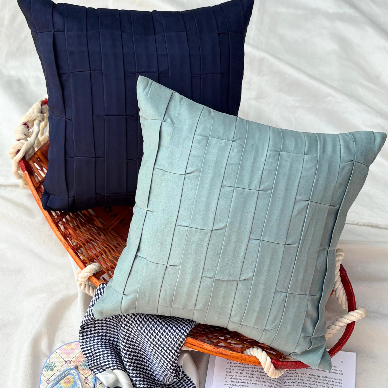 When it comes to blue Pillow covers, you would love the Dull Blue Love Tune. This faux suede Pillow cover has a pleated design, but the pleats have alternating stitches across the entire pattern, giving this solid color Pillow cover, a unique and irresistible look. Get this solid throw Pillow cover and watch it transform your room instantly, giving your interiors a much-needed freshness and color. This modern decorative Pillow cover has a matching plain fabric in faux suede on the back, along with a hidden-flap covered zipper for easy insertion and removal of inserts.