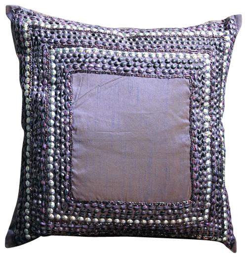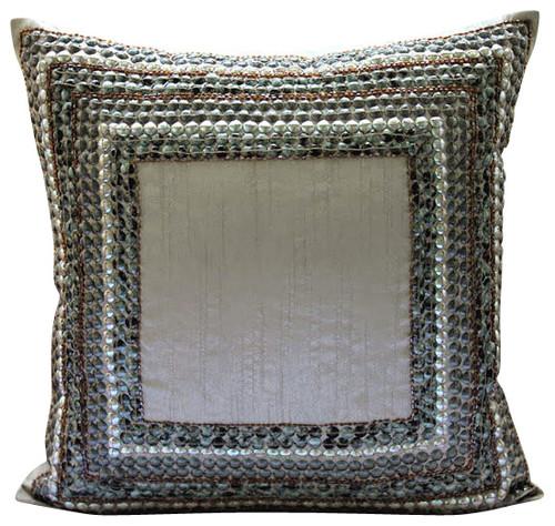 This blue euro sham, made of art silk fabric, has a fancy border that’s handcrafted impeccably. Comprised of three different colored sequins separated by bugle beads to add more interest to the pattern, this silk euro sham is very attractive.