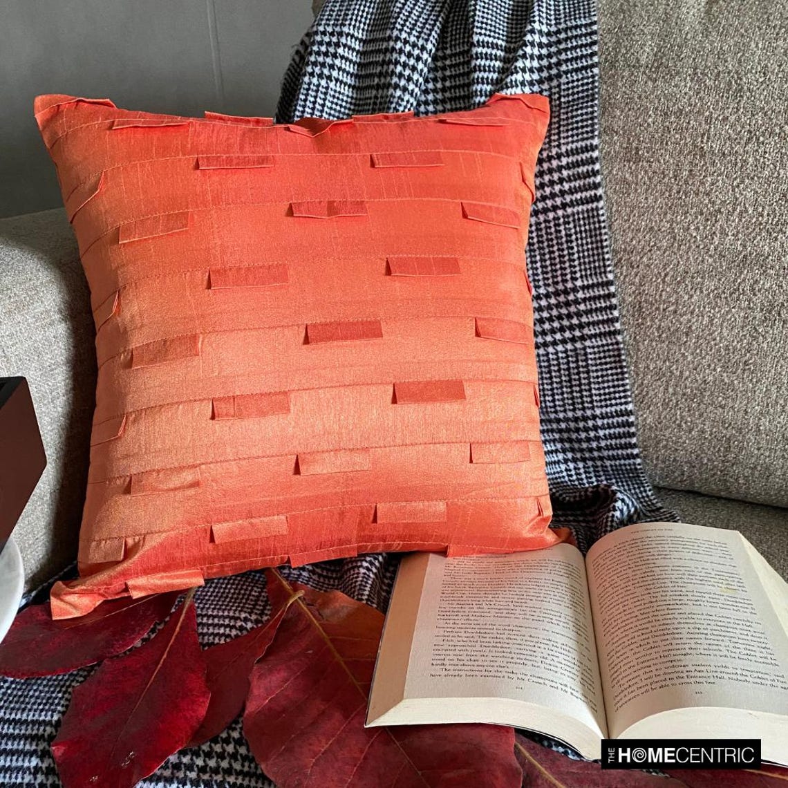 Meticulously designed, The HomeCentric features decorative throw pillow covers for your sofa, bed, or study. This square pillow cover is 100% handcrafted by Indian artisans. The work of pintucks in striped pattern reflects modern style for premium home décor. To enhance the appeal of this pillowcase, embellishments form an enticing pattern on each stripe of pintucks. | To suit the different themes of your interior, this design of square pillow cover is available in an array of colors and sizes. Made from suede, the texture complements and elegantly highlights each detail of this pillow cover. You can also team solid color cushions with this design to give a new feel to the ambiance. |