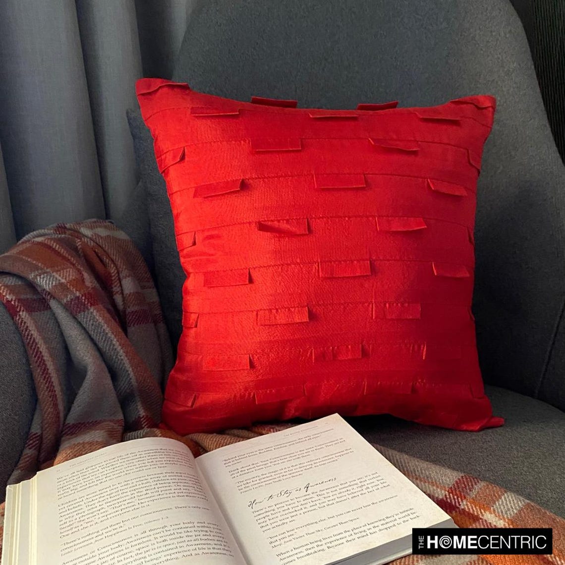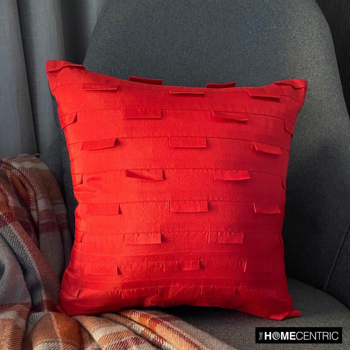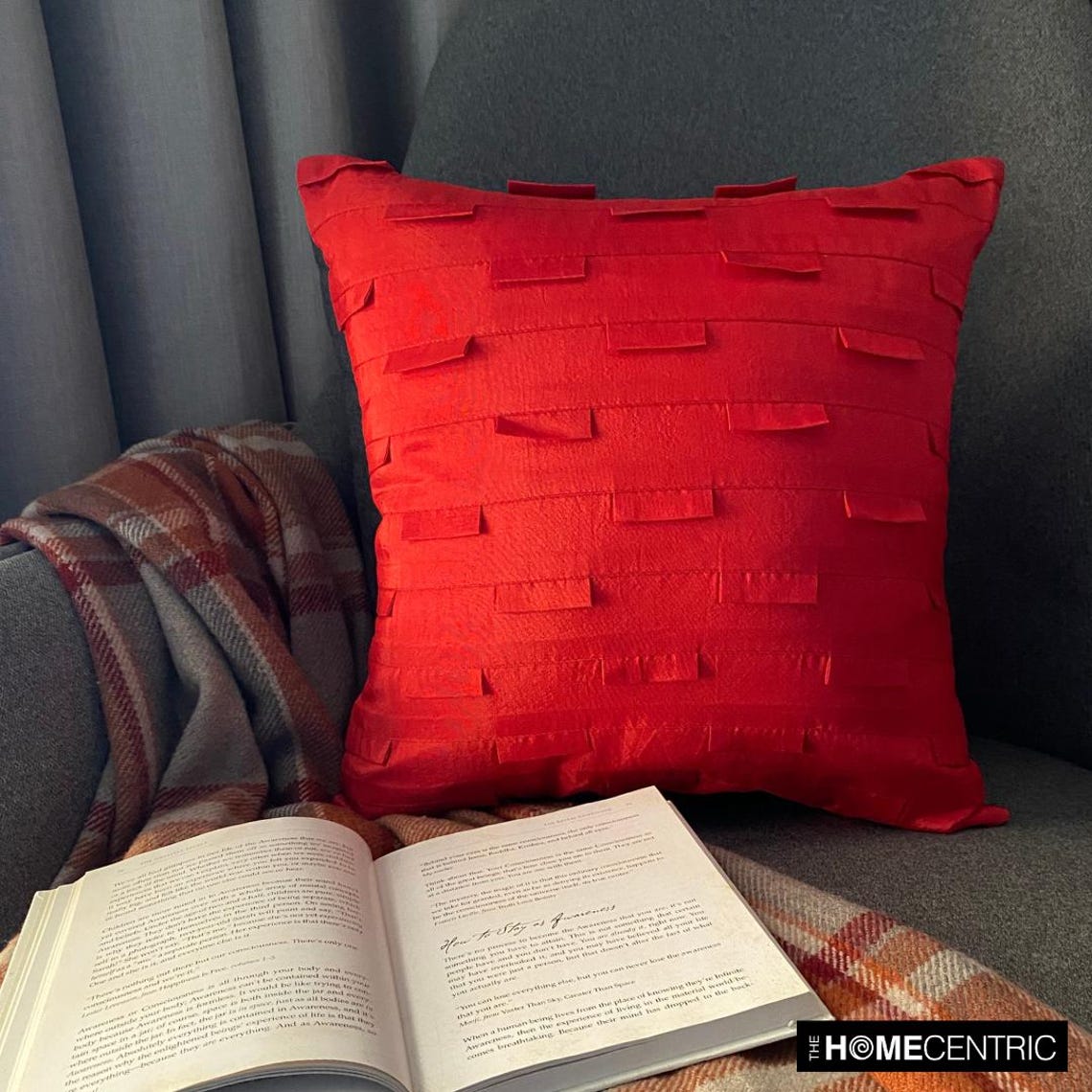 Deep Red Ocean is a beautifully designed red pillow cover in art silk dupion fabric. The interesting design of this silk pillow cover - alternative flaps horizontally placed - is very eye-catching and looks fascinating. This modern pillow cover can bring out the best in any setting, and is a great buy. The professionally tailored finish and zipper closure under a concealed overlap, make this deep red throw pillow cover, a must-have in your space. Soft, comfortable, and tailored to perfection; this red pillow cover is the epitome of luxury and royalty.
