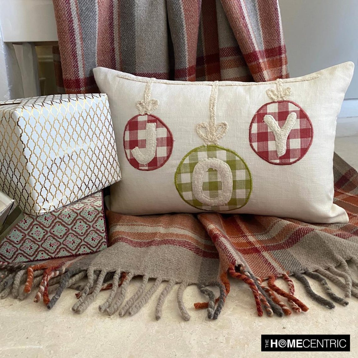 Bring holiday joy and charm to your home with the 'Joyful Cheer' Lumbar Pillow Cover from The HomeCentric. Made from red and green cotton linen, this oblong cushion cover features detailed applique and embroidery, adding both texture and festive flair to your Christmas décor.