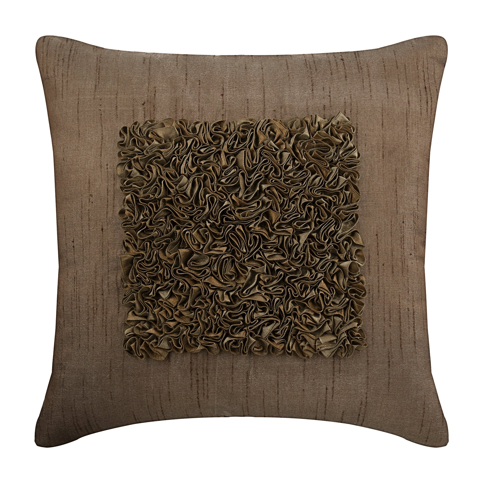 The Plum Vintage Love will leave you awe-inspired. It has densely ruffled ribbons that are embroidered on the euro sham in a square design. These designer euro shams are handmade by Indian craftsmen. Available in 7 different colors, our ruffled ribbon euro shams are sure to make a statement, no matter where you place them. | The euro sham is crafted from the highest quality art silk. This material is light, airy, and perfect for homes that are inspired by modern, minimalist, transitional, and beach-style décors. To make your interiors stand out, place these euro shams with different sizes of pillows in complementary color tones. |