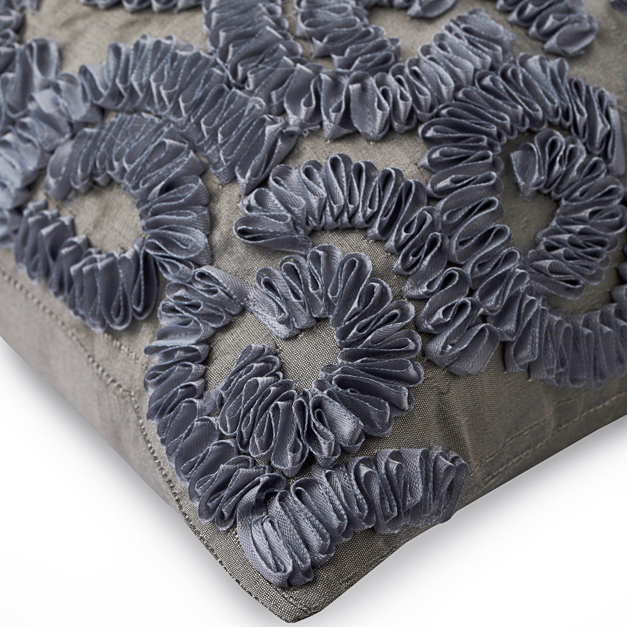 The Sizzle is all set to make contrasting combinations this season! The intricate ribbon embroidery in a semi-circular geometric pattern beautifully accentuates the silhouette of this gray euro sham.