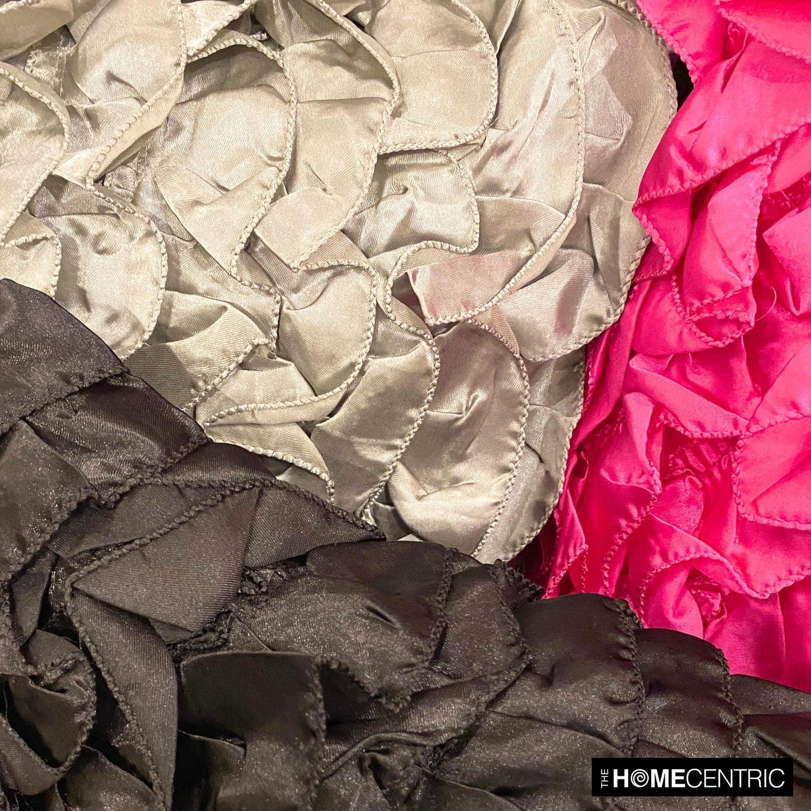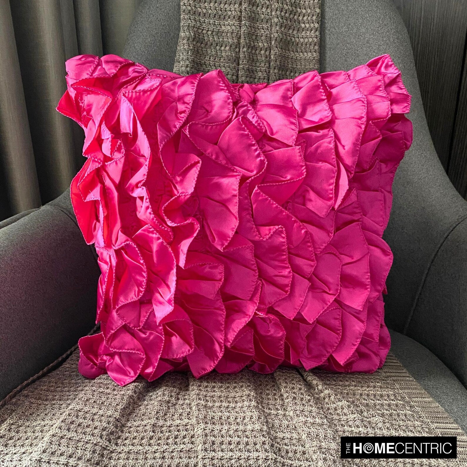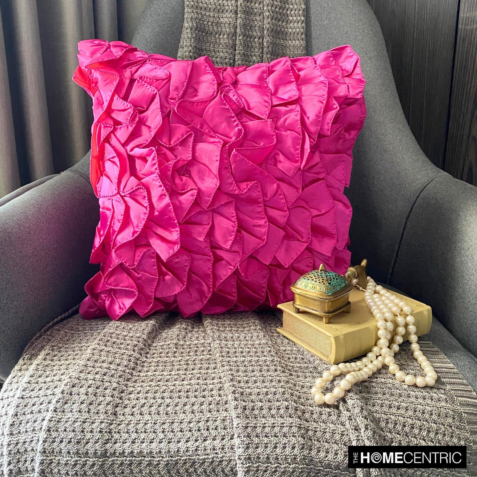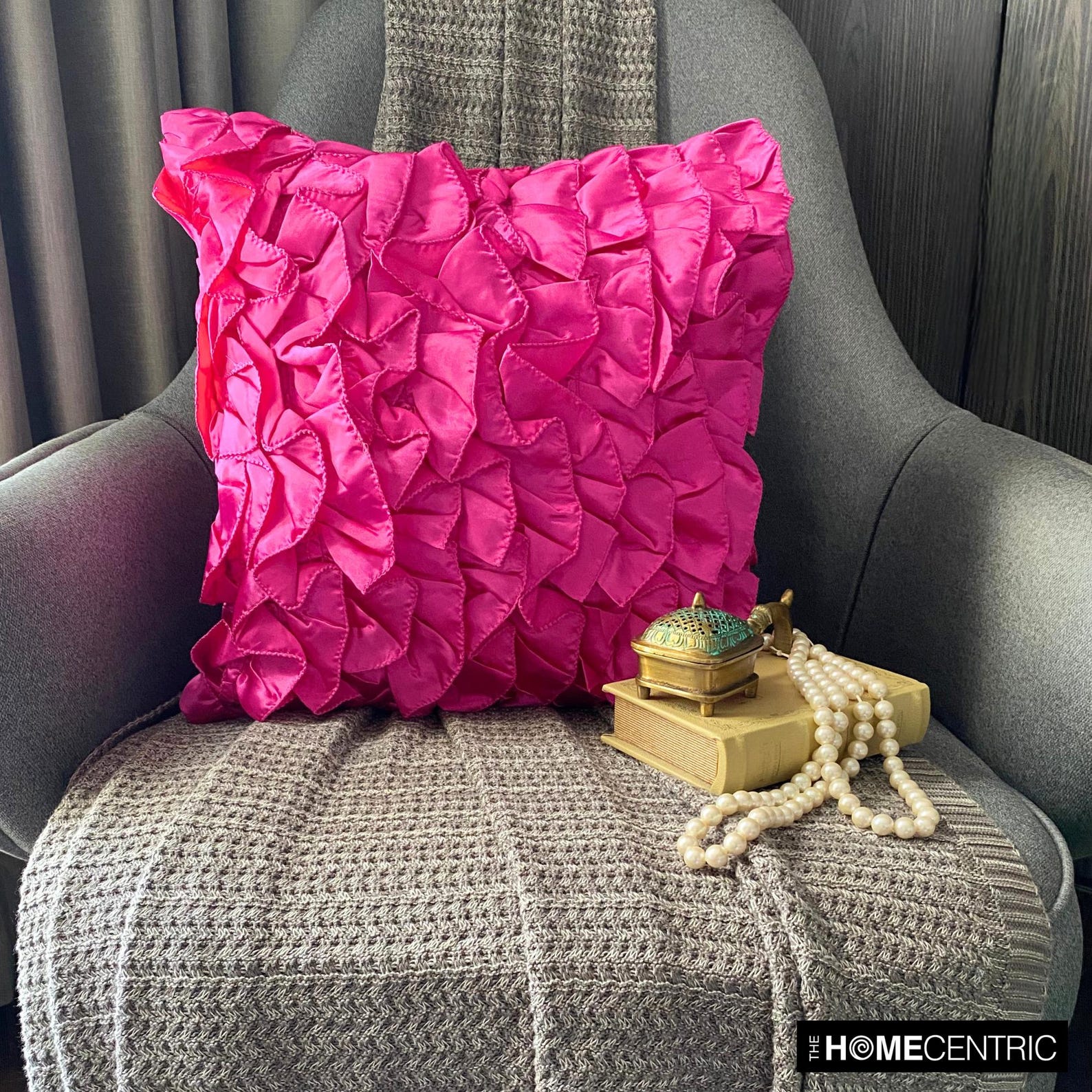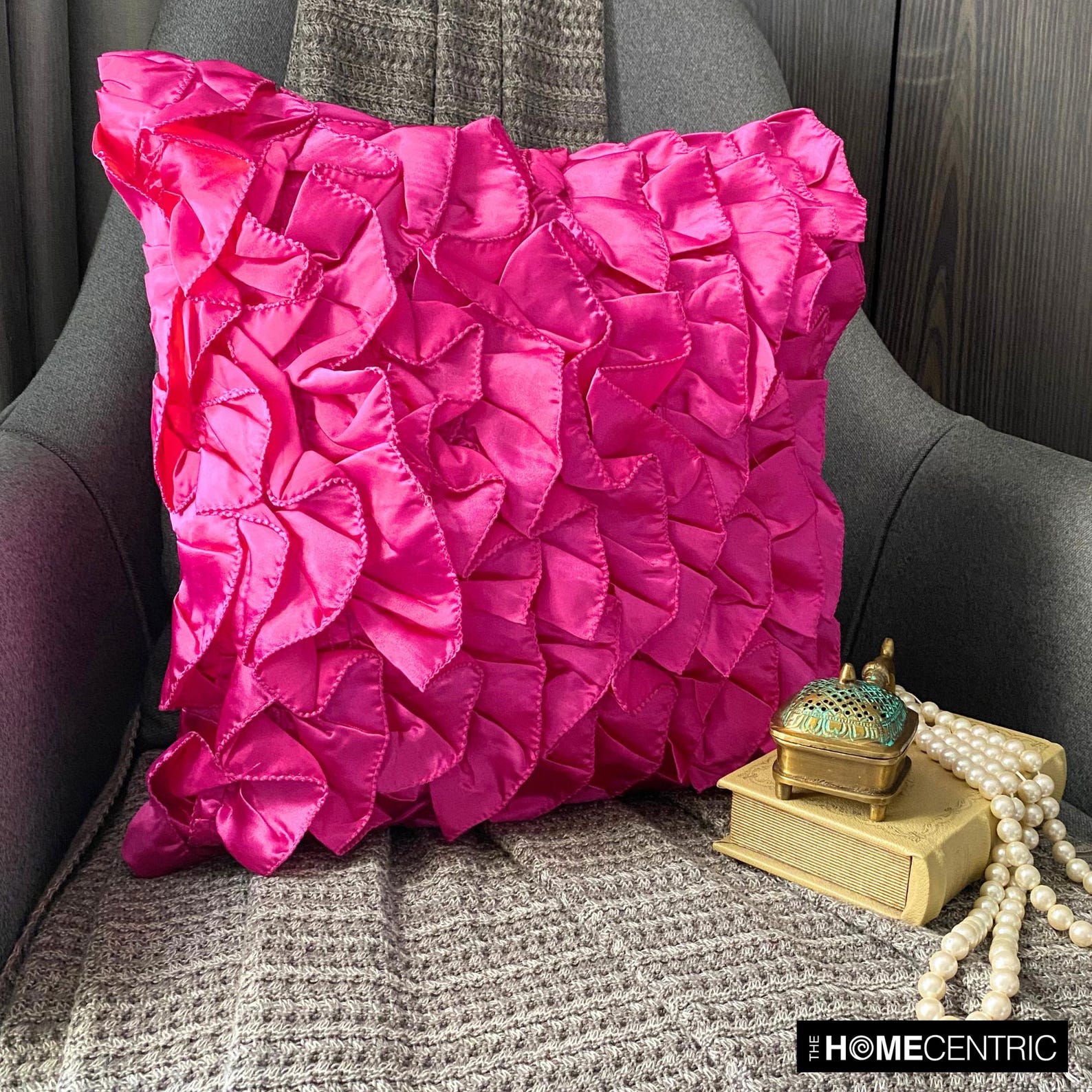 Handcrafted by Indian artisans, the square pillow exhibits an exquisite design of soft and delicate ruffles that bring a classic feel to the ambiance. Reminisce the old and gold vintage style that flattered everybody. | Carefully designed with intricate detailing, the pillow cover features a perfect combination of satin and ruffles. Available in multiple shades, the pillowcase exhibits an aesthetic appeal in each color. |