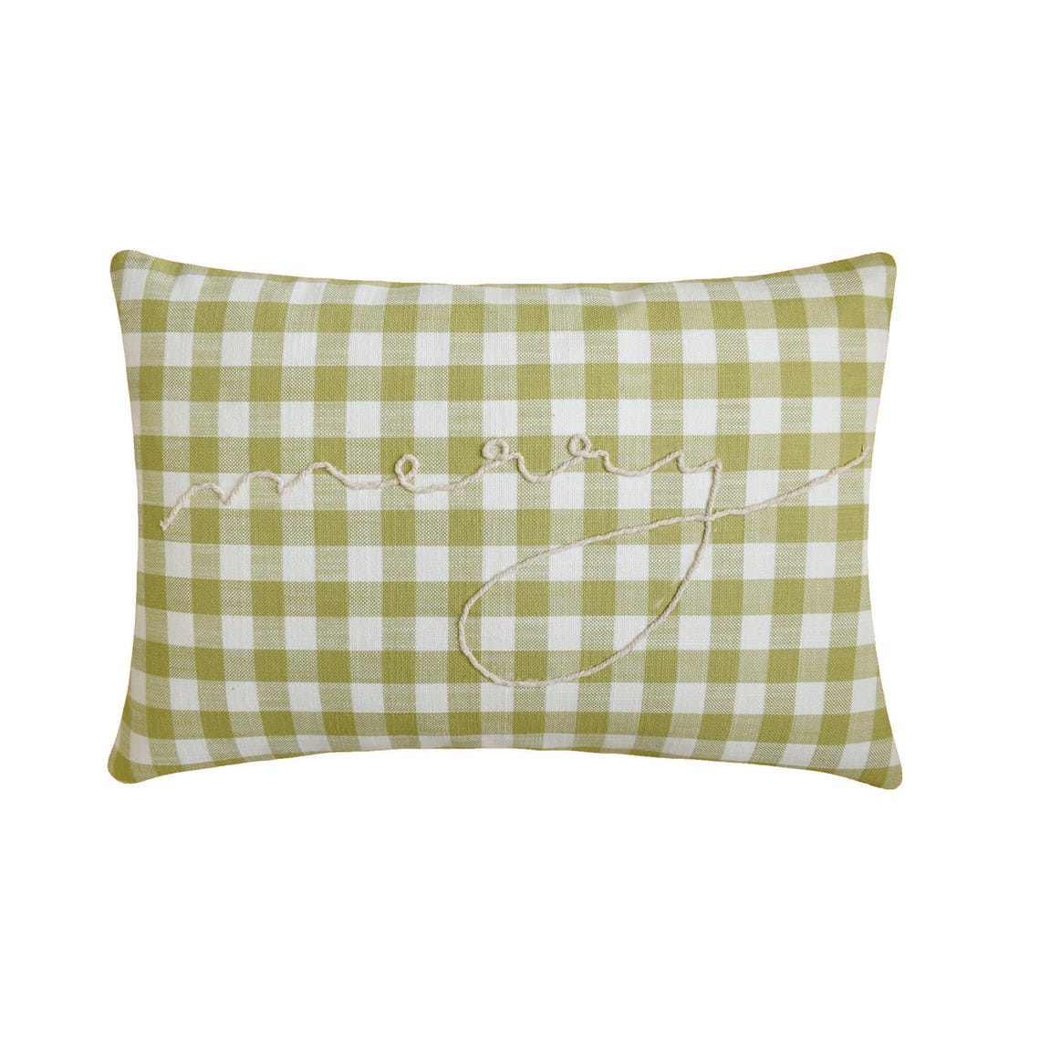 Add a touch of handcrafted holiday charm with The HomeCentric’s “Xmas Merry” Pillow Cover – a festive blend of classic green buffalo checks and delicate embroidery.