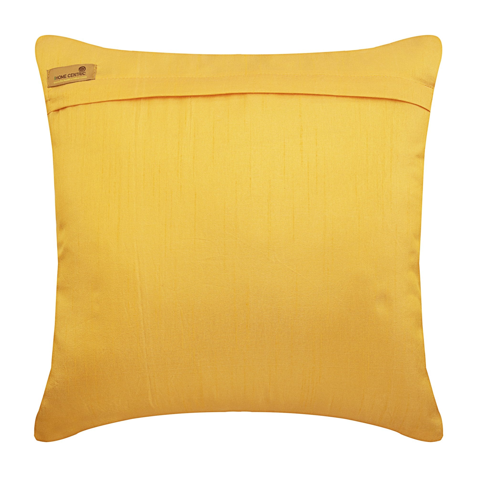 Fabric: Taffeta Material Used: Fabric Fabric Color: Yellow Pattern: Solid Color Style: Modern Back of the cover: Plain Yellow Taffeta Fabric For Insert Removal: Concealed flap covered zipper on the back for easy insertion and removal of inserts |