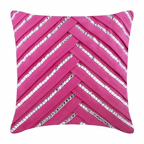 Fabric: Faux Suede Material Used: Crystals Fabric Color: Turquoise Blue Pattern: Striped Style: Modern Back of the cover: Plain Turquoise Blue Faux Suede Fabric For Insert Removal: Concealed flap covered zipper on the back for easy insertion and removal of inserts |