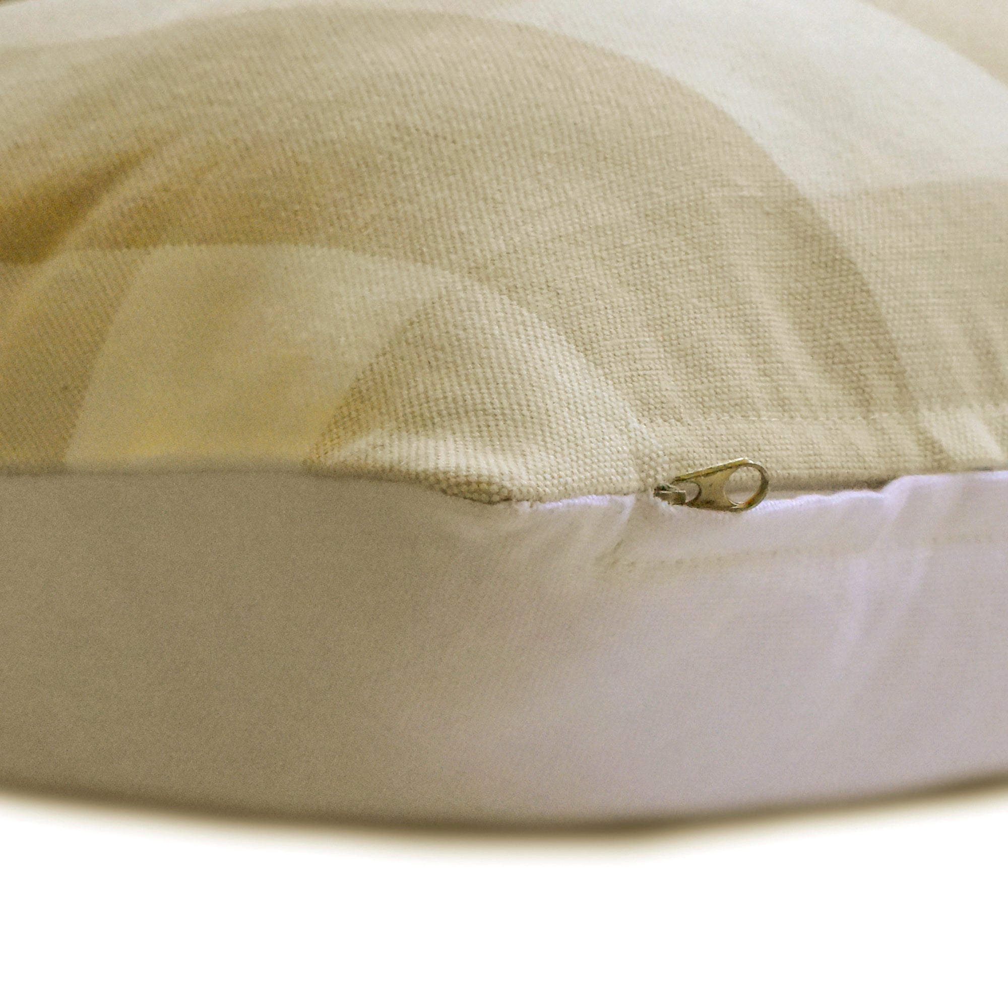 Fabric: Cotton Material Used: Fabric Fabric Color: Beige Pattern: Plaid Style: Contemporary Back of the cover: Plain White Cotton Fabric For Insert Removal: Concealed flap covered zipper on the back for easy insertion and removal of inserts |