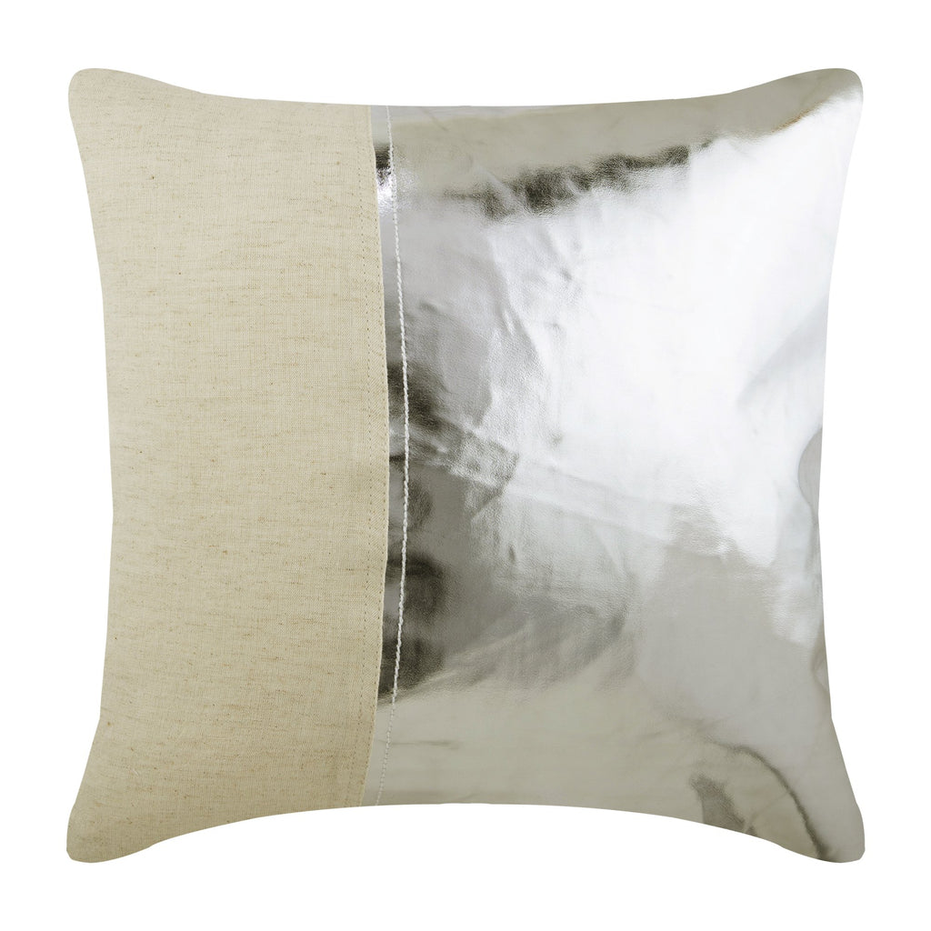 Fabric: Cotton Linen Material Used: Fabric Fabric Color: Metallic Pink Pattern: Patchwork Style: Contemporary Back of the cover: Plain Natural Beige Cotton Linen Fabric For Insert Removal: Concealed flap covered zipper on the back for easy insertion and removal of inserts |