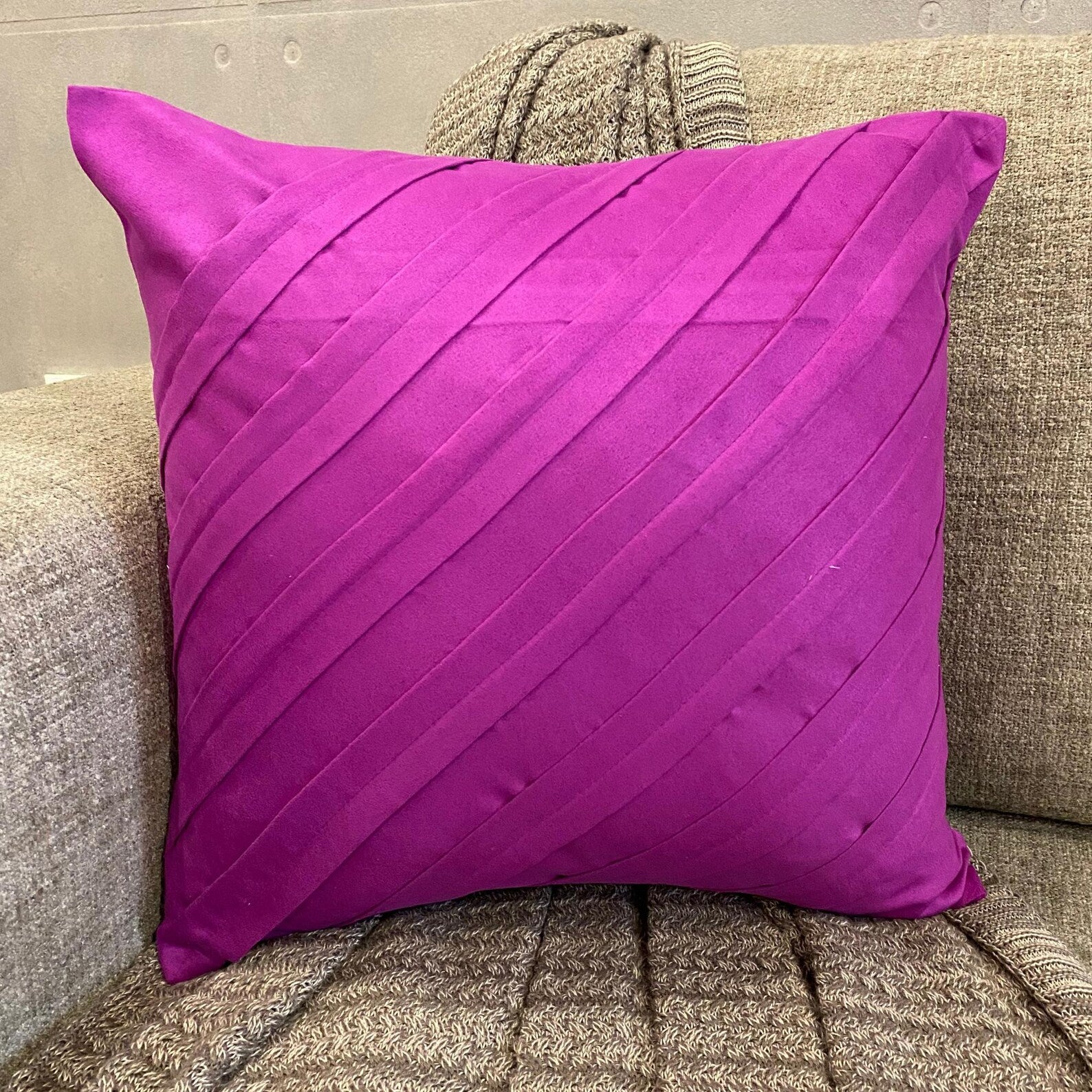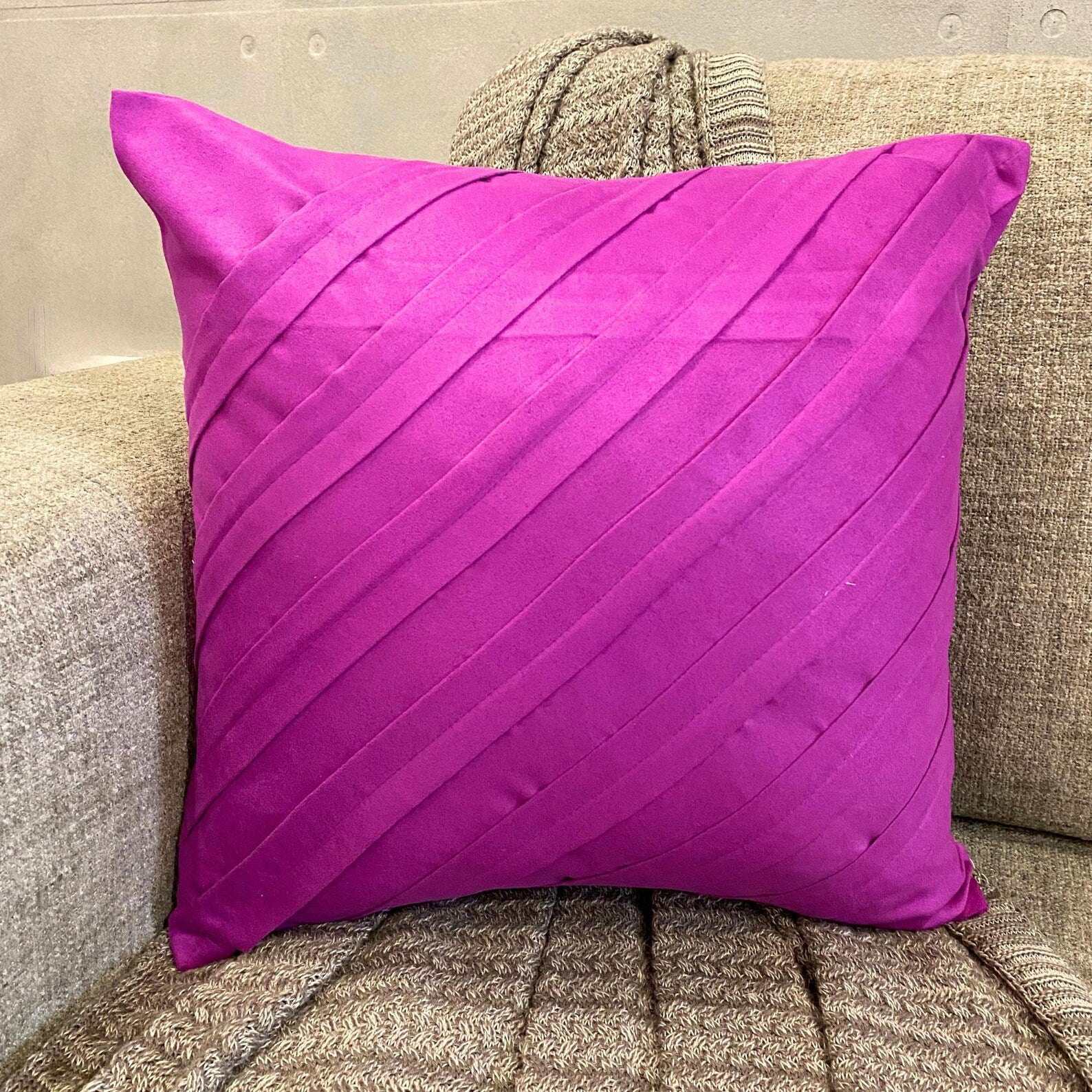 Fabric: Faux Suede Material Used: Fabric Fabric Color: Fandango Pink Pattern: Solid Color Style: Contemporary Back of the cover: Plain Purple Faux Suede Fabric For Insert Removal: Concealed flap covered zipper on the back for easy insertion and removal of inserts |