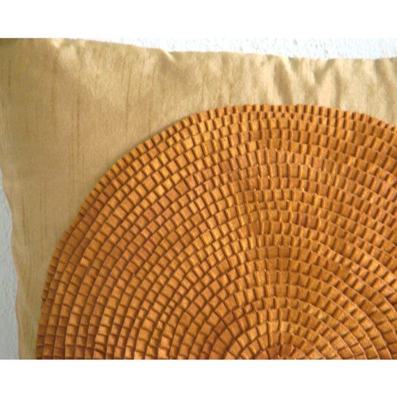 Get Crowning Glory, a beautiful, intricately designed and skillfully tailored gold throw pillow cover to heighten the sophistication of your home. The complex and delicate ribbon embroidery in a circular geometric pattern beautifully accentuates the silhouette of this floral throw pillow cover.