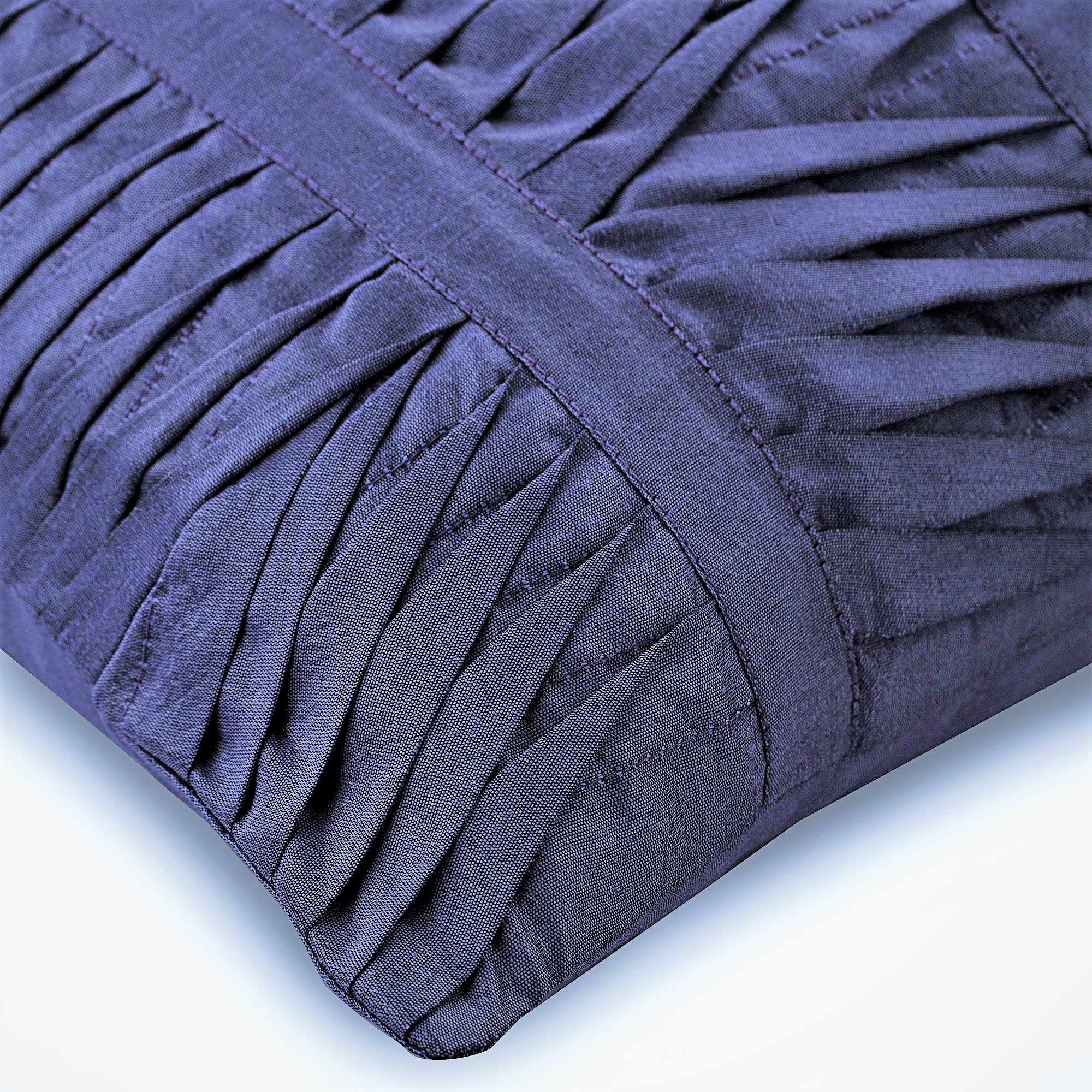 We’re crushing on pintucks this season. The Dark Blue Beauty is loaded with twisted pintucks and comes with three vertical bands. It has a sharp silhouette and will be loved by your guests. You can have this modern pillow cover in 7 different shades and in sizes that range from 12 x 12 inches to 26 x 26 inches. | The throw pillow cover is made from 100% art silk. This fabric is light, airy and will be perfect for all the seasons. Whether your home has a modern, contemporary, transitional, or traditional theme, it will suit all kinds of interiors. This decorative pillow cover is made in India by fine craftsmen. |