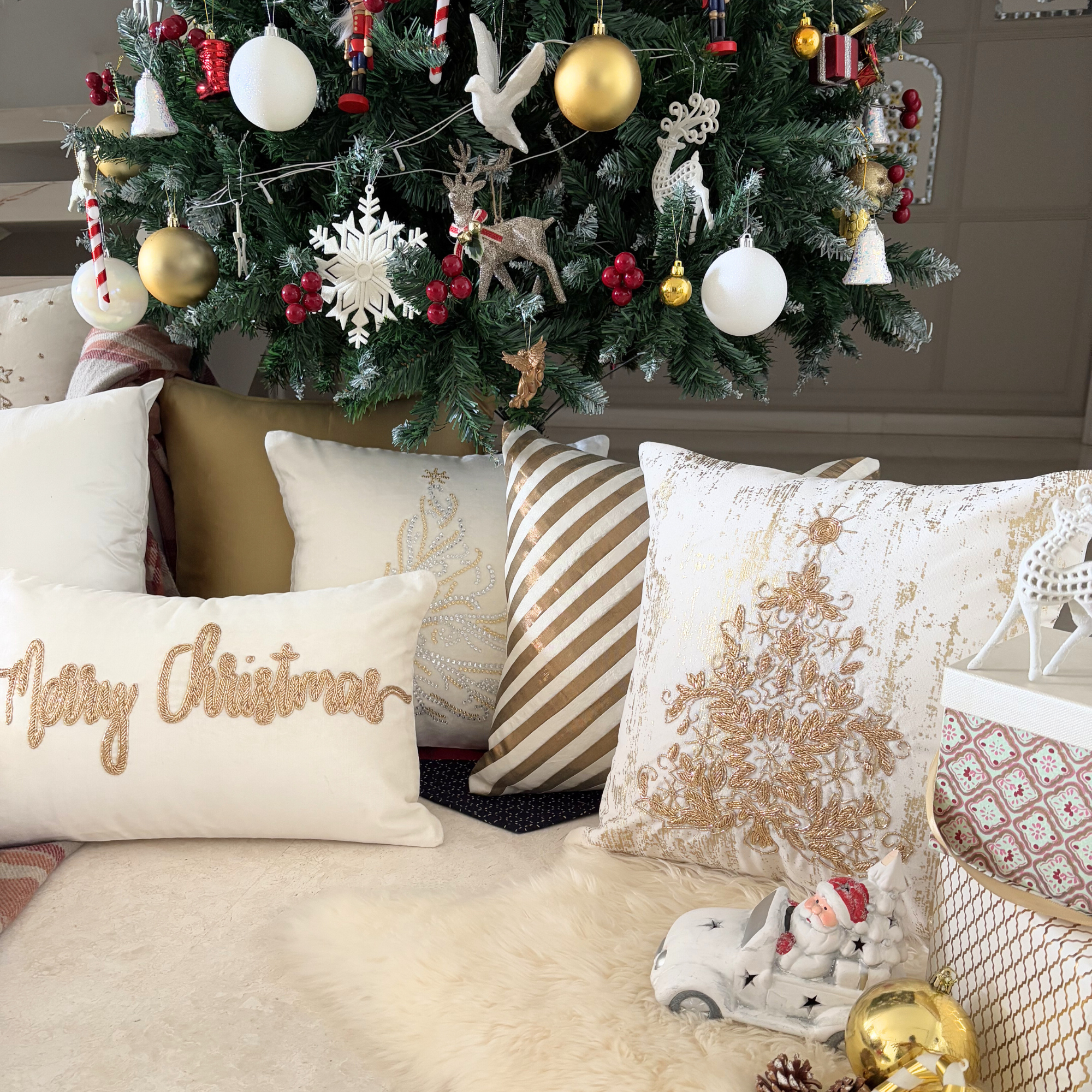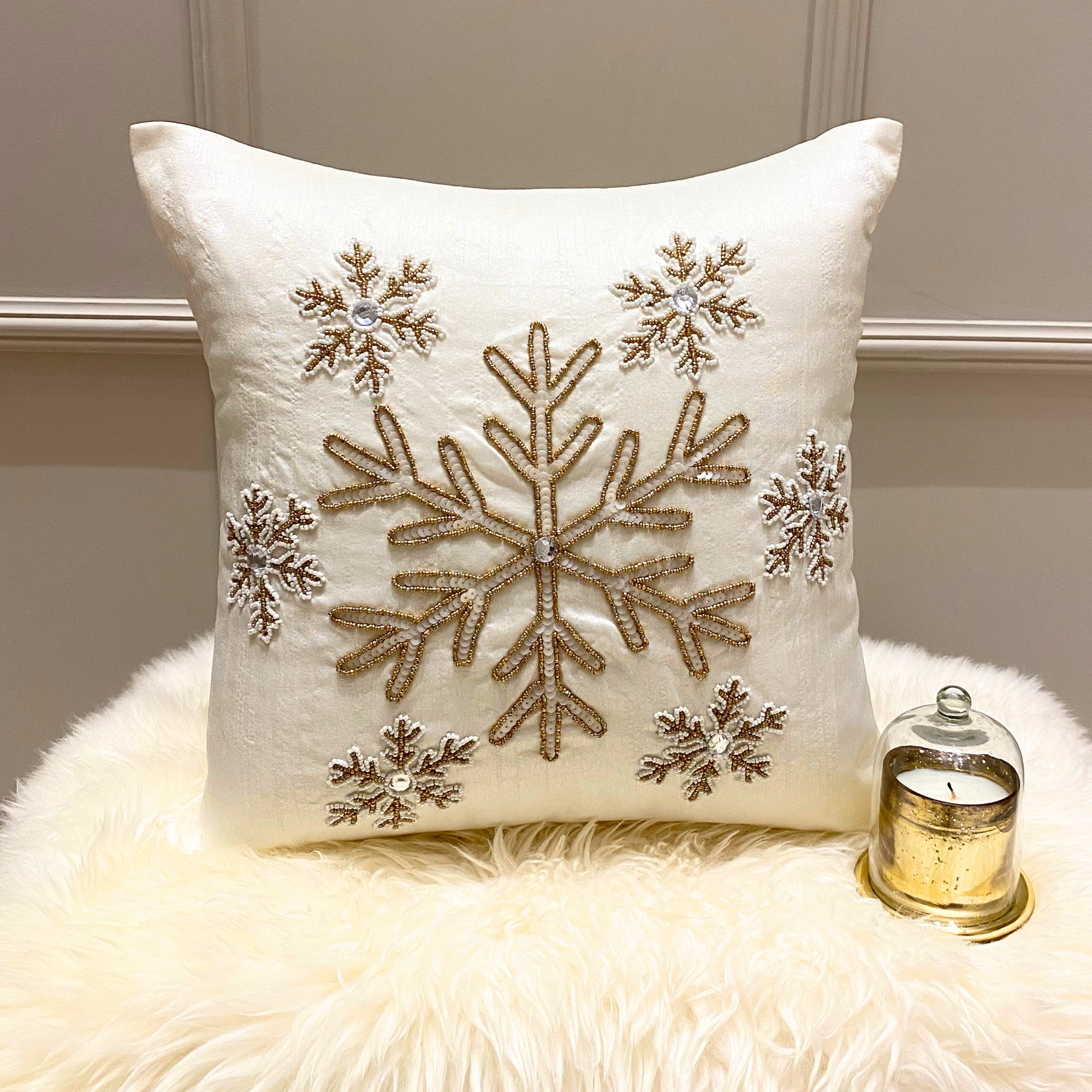 Add a sparkling touch to your home with the Dewdrop Flake Pillow Cover from The HomeCentric. Made from ivory faux silk, this pillow features an intricate snowflake design enhanced with sequins and beads, bringing modern elegance and shimmer to your Christmas décor.