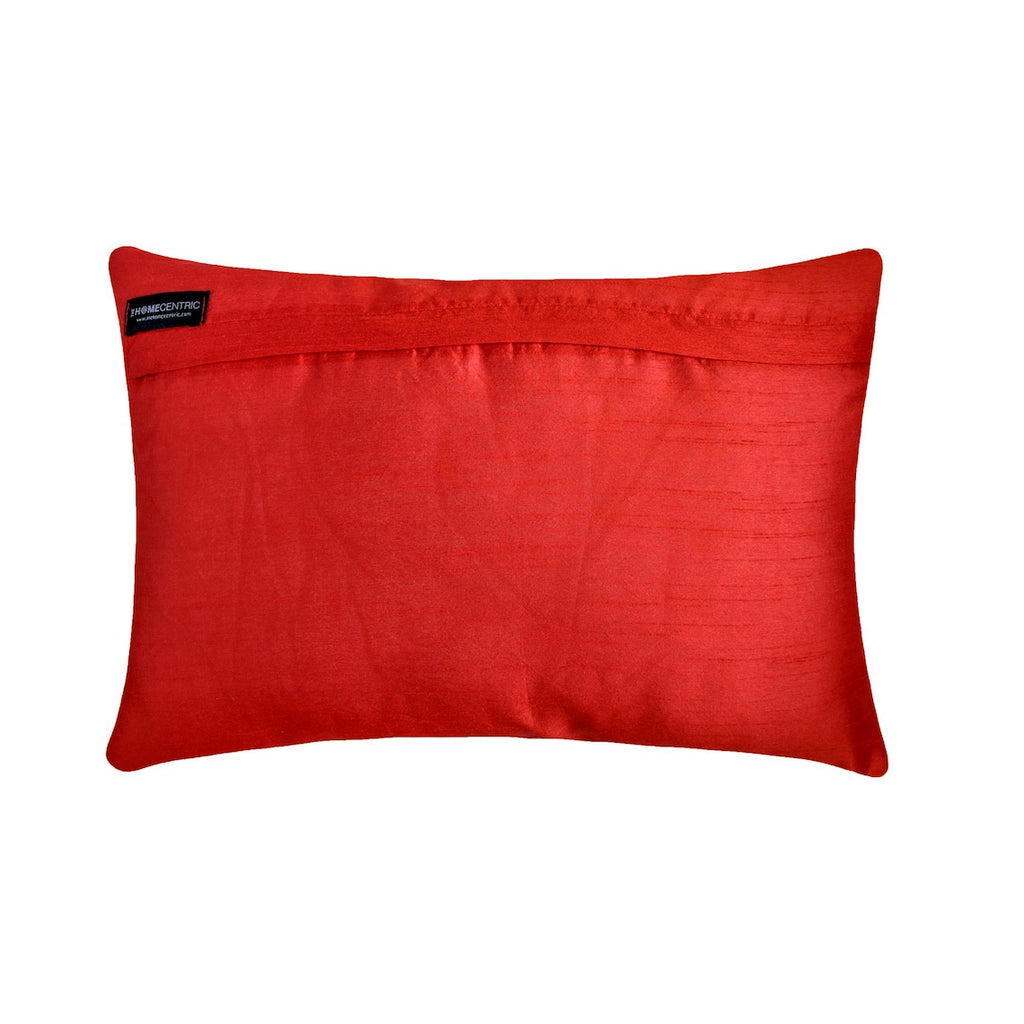 Celebrate the holidays with the 'Falala' Lumbar Pillow Cover from The HomeCentric. Made from red faux silk, this oblong cushion cover features white embroidered cord detailing for a stylish and festive touch.