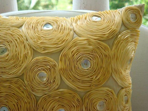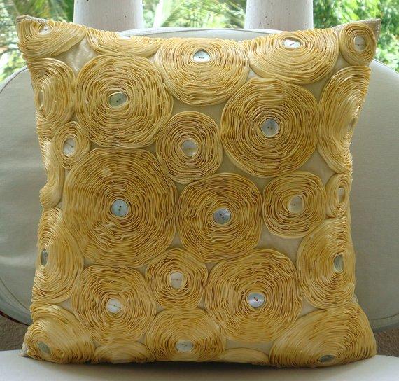 Gold Garden is an exclusive, 100% handmade decorative silk euro sham design. Made with art silk fabric, these gold euro shams have an all-over floral design with the beautifully delicate flowers designed out of thin ribbon with a button at the center of each flower, giving this floral euro sham its chic look.