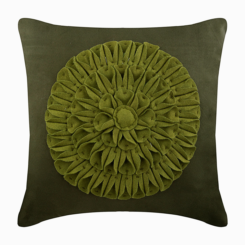 The Green Dahlia design of this extremely gorgeous piece of décor reflects elegance and simplicity. This decorative pillow cover features ruffle detailing at the front that portrays a natural and floral style. The use of contrasting shades for the foreground that is the detailing and background, makes the design more appealing. | Handcrafted by Indian artisans, this pillow cover is made from suede that beautifully complements its fabulous design. Made for your home and office, this pillow cover is available in numerous shades. This design of the pillow cover will look great with wooden furniture. This piece is undoubtedly a classic. |