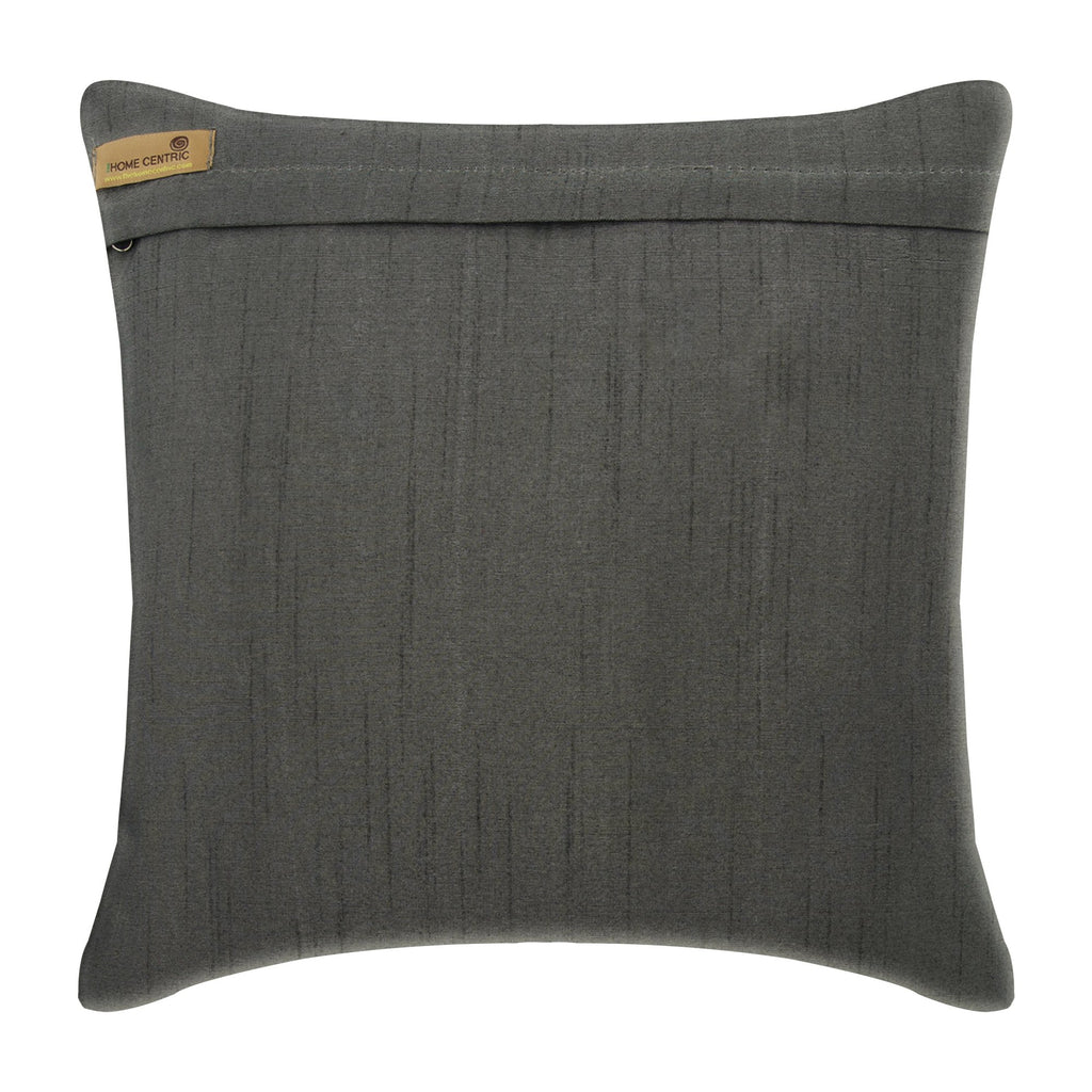 Fabric: Art Silk Material Used: Fabric Fabric Color: Gray Pattern: Patchwork Style: Modern Back of the cover: Plain Grey Art Silk Fabric For Insert Removal: Concealed flap covered zipper on the back for easy insertion and removal of inserts |