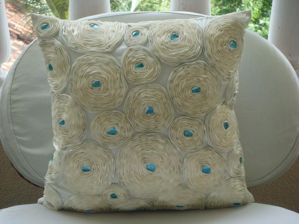 Ivory Roses is an exclusive, 100% handmade decorative silk euro sham design. Made with art silk fabric, these ivory euro shams have an all-over floral design with the beautifully delicate flowers designed out of thin ribbon with a button at the center of each flower, giving this floral euro sham its chic look.