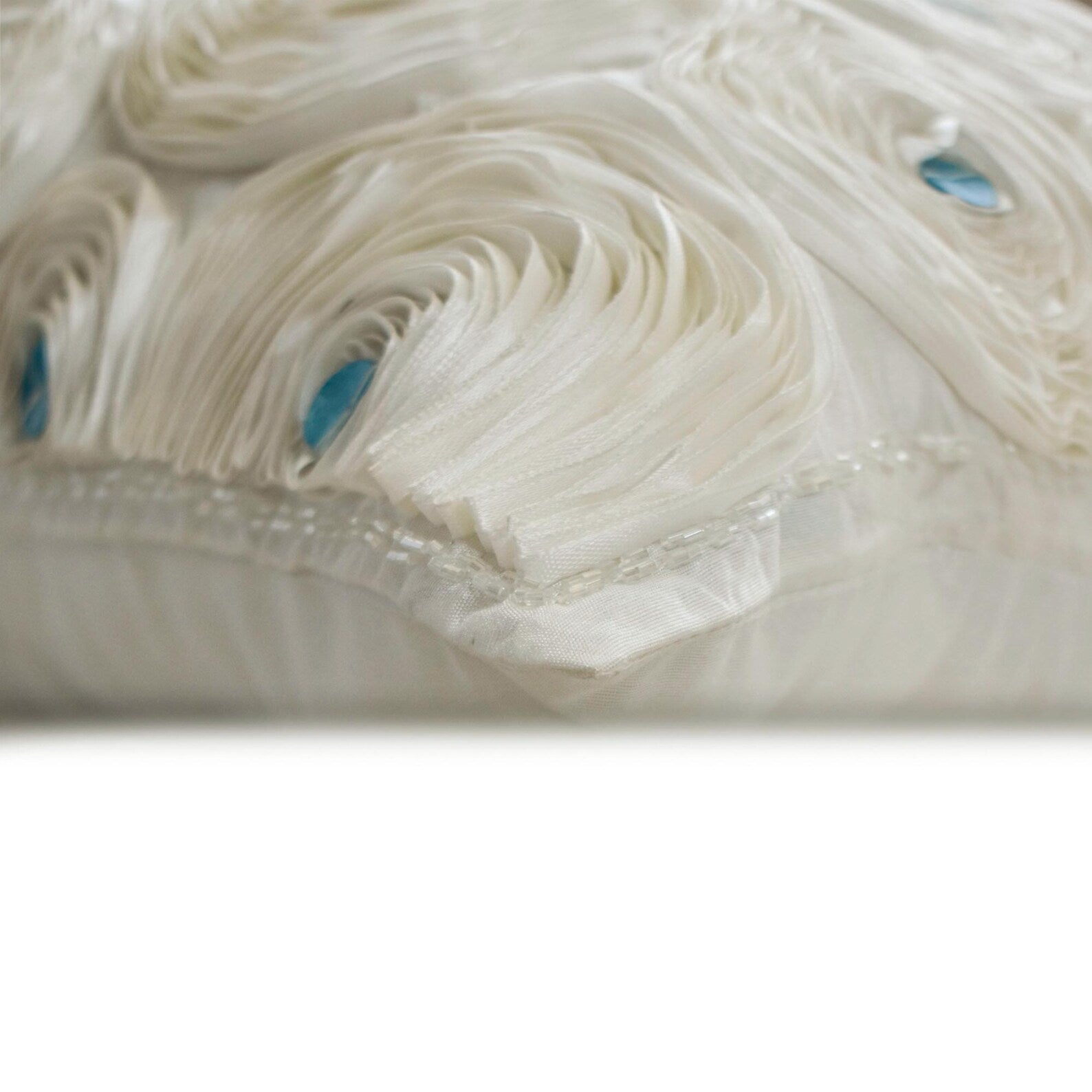 Ivory Roses is an exclusive, 100% handmade decorative silk pillow cover design. Made with art silk fabric, these ivory pillow covers have an all-over floral design with the beautifully delicate flowers designed out of thin ribbon with a button at the center of each flower, giving this floral throw pillow cover its chic look.