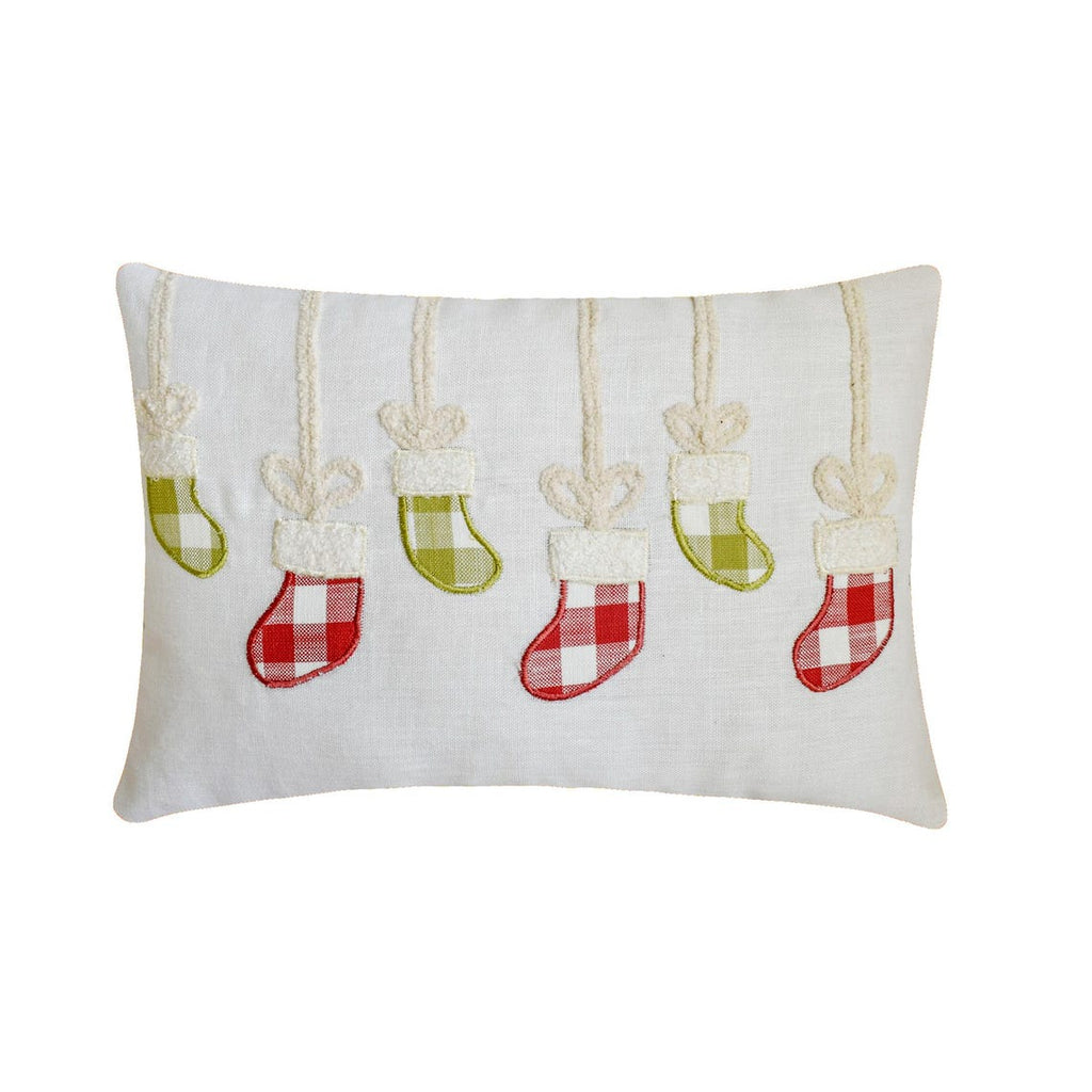 Add holiday charm to your home with the 'Jolly Stocking' Lumbar Pillow Cover from The HomeCentric. Crafted from red and green cotton linen, this oblong cushion cover features intricate applique and embroidery, creating a delightful accent for your Christmas décor.