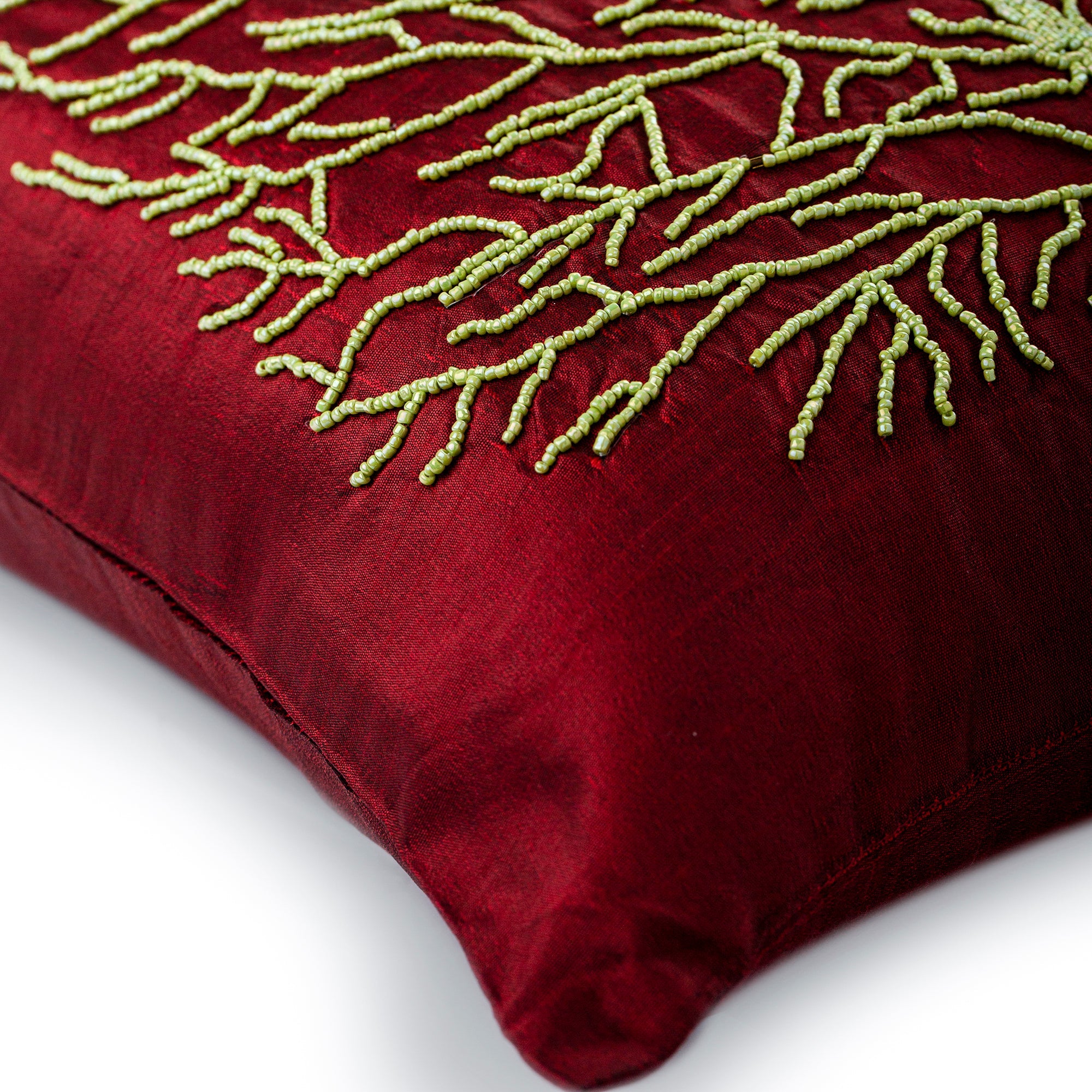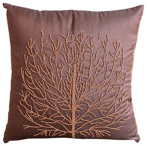 Inspired by nature, the Money Tree is a beautiful pillow cover that will create a striking effect when placed with neutral-colored pillows. It is embellished with seed beads that form a tree-like design. This decorative pillow cover will radiate plenty of charisma when placed on the couch, bed, or a vintage chair. | Made with high-quality art silk, the throw pillow cover is a super chic accessory that will give your home décor a new lease of life. Handmade in India by the finest artisans, it comes in two neutral shades and in sizes ranging from 12 x 12 inches to 26 x 26 inches. |