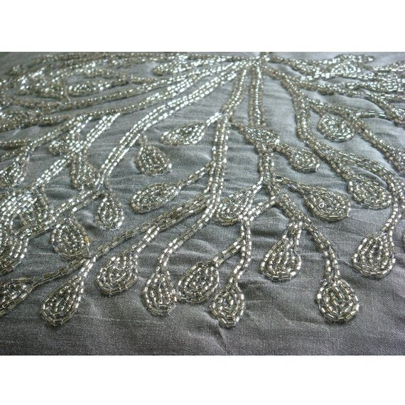 Fabric: Art Silk Material Used: Beads Fabric Color: Dark Peach Pattern: Nature & Floral Style: Contemporary Back of the cover: Plain Dark Peach Art Silk Fabric For Insert Removal: Concealed flap covered zipper on the back for easy insertion and removal of inserts |