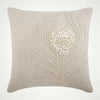 Add a touch of royal elegance to your sofa, bed, or chair with the Pearly Peacock Feather. It is decorated with a beautiful peacock feather design. The feather featured on this cushion cover is embroidered with scintillating sequins and beads to create the most graceful design you could ever imagine. | The throw pillow cover is crafted with a blend of cotton and linen and features dazzling sequins. This modern yet traditional style pillow cover will suit contemporary as well as traditional and transitional styles of décor. It is made in India by fine artisans, so that you can be assured of the highest quality. |