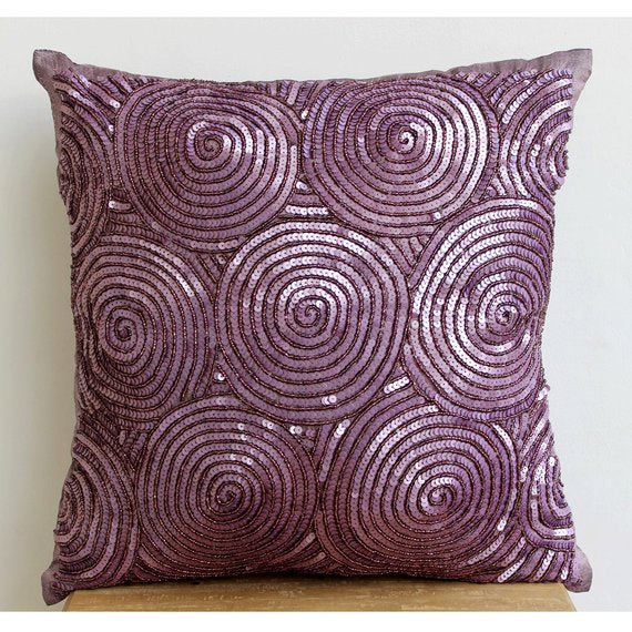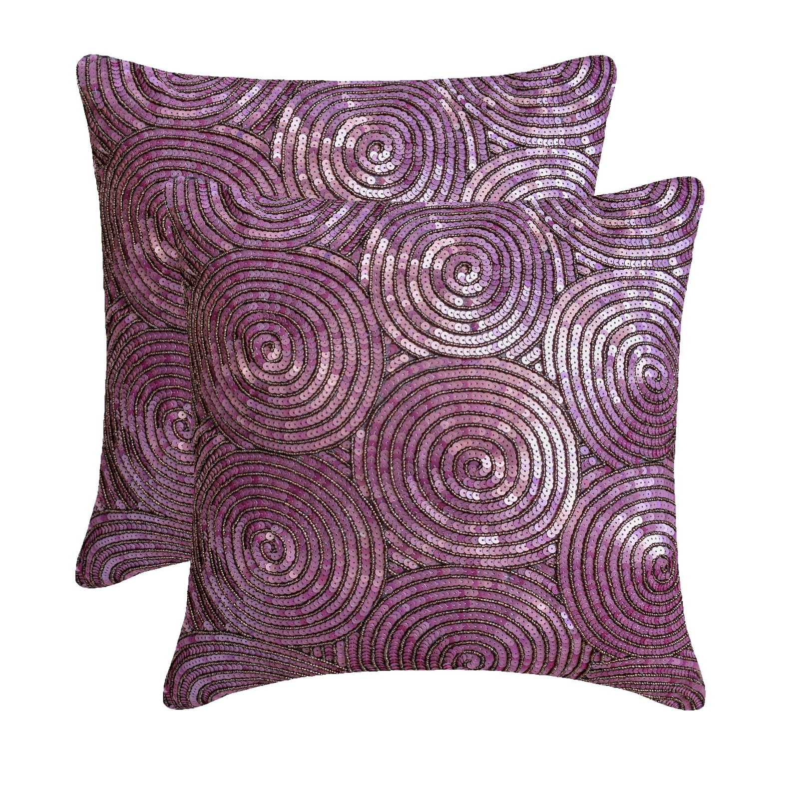 The Purple Touch is a designer pillow cover designed with concentric sequin circles. It spells glamor with its overlapping concentric circles that are defined with seed beads and then filled with scintillating sequins. 100% Handmade by Indian artisans, it is sure to add a chic touch to any home décor. | Crafted exquisitely in art silk, the throw pillow cover is a beautiful combination of seed beads and sequins. It is a modern decorative pillow cover that will surely add beauty to your home interiors. Available in 8 unique shades, you can be sure to find the pillow covers that’ll suit your couch, chair, or bed. |