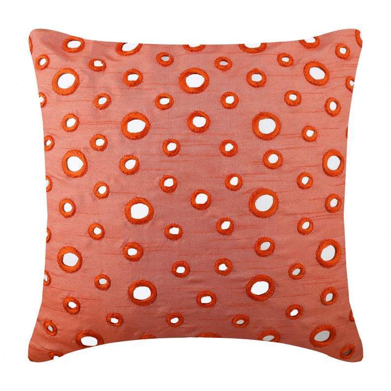 Fabric: Cotton Canvas Material Used: Mirrors Fabric Color: Beige Pattern: Circles & Dots Style: Contemporary Back of the cover: Plain Beige Cotton Canvas Fabric For Insert Removal: Concealed flap covered zipper on the back for easy insertion and removal of inserts |