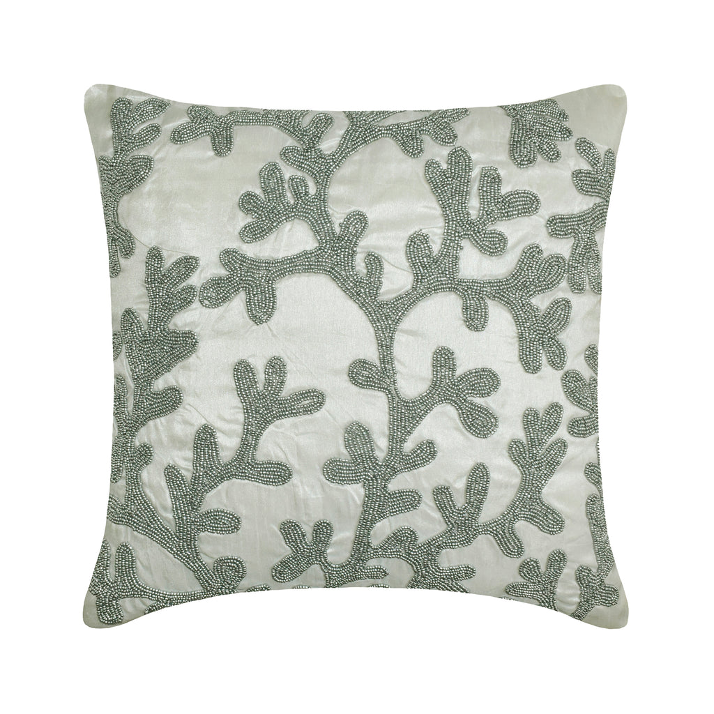 Aptly named, the Silver Coral is a beautiful beach themed euro sham that has delicately embroidered coral design with beads that showcase intricate craftsmanship and detailing.