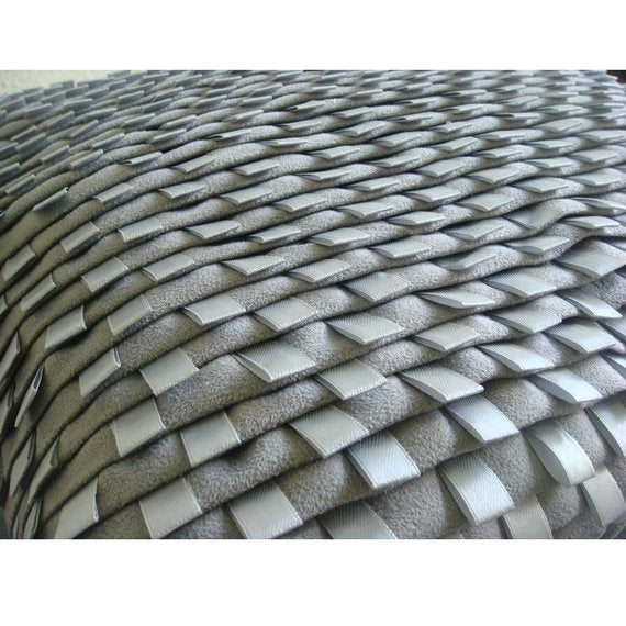 Silver Gray Lining is a striped throw pillow cover that exudes some serious class. Designed with pintucks and ribbons on faux suede fabric in solid colors, this modern pillow cover can transform just about any place in an instant. Along with the pintucks that give it its striped look, the folded satin ribbon in a slightly different shade stitched expertly into the pintucks, gives it a checkered look.
