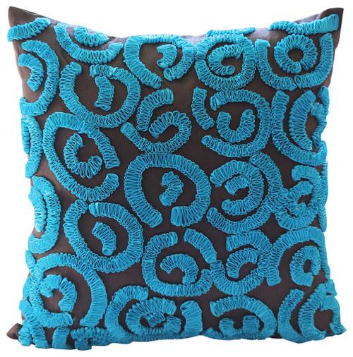 We love all things glamorous. Take, for example, Sizzle, a contemporary pillow cover that features some inspiring ribbon artwork. It is the perfect statement piece to place with some solid colored pillows on your sofa or bed. You can pick this piece in two different colors – brown, gray & light blue. | The throw pillow cover is finely crafted with premium art silk and ribbons. This material is airy, super light and really comfortable. The modern design of this pillow cover blends beautifully with this material, injecting even more style into it. Place it on that special vintage chair; it will surely stand out and make a statement. |