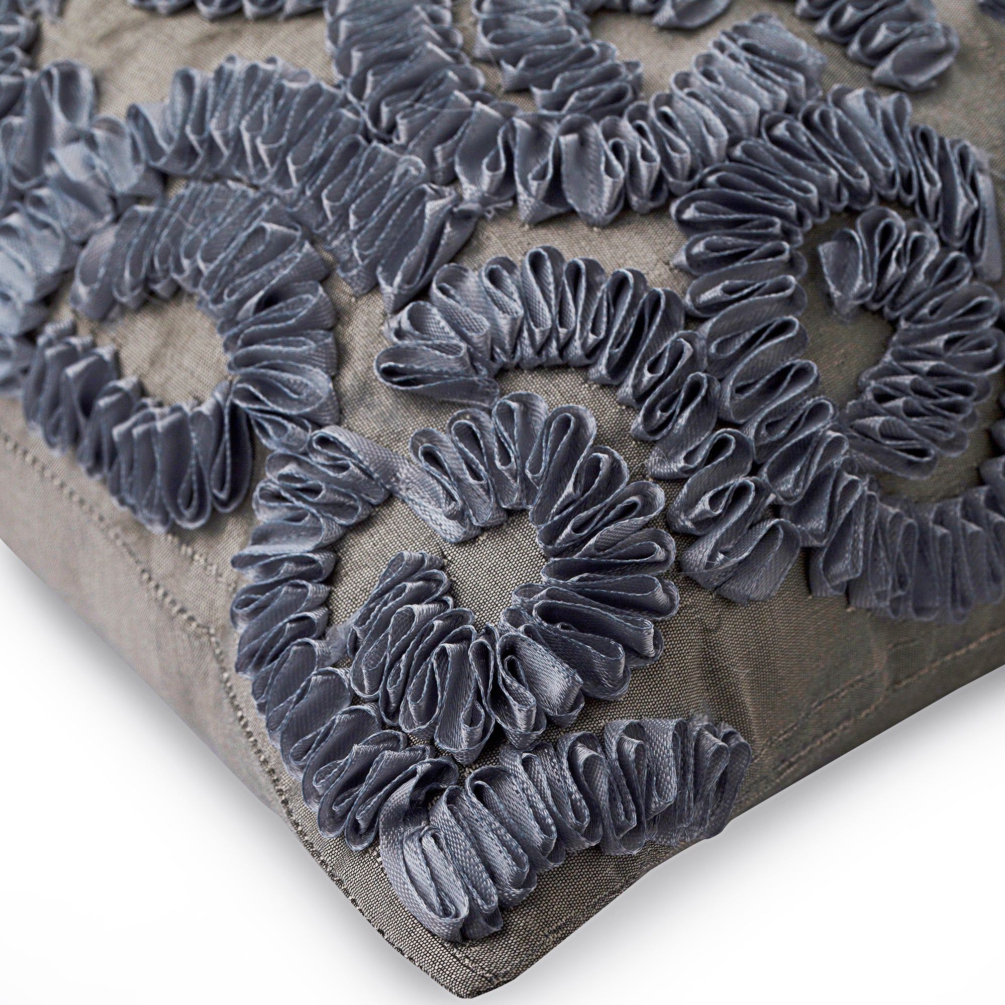 The Sizzle is all set to make contrasting combinations this season! The intricate ribbon embroidery in a semi-circular geometric pattern beautifully accentuates the silhouette of this gray pillow cover.