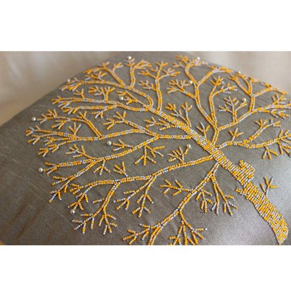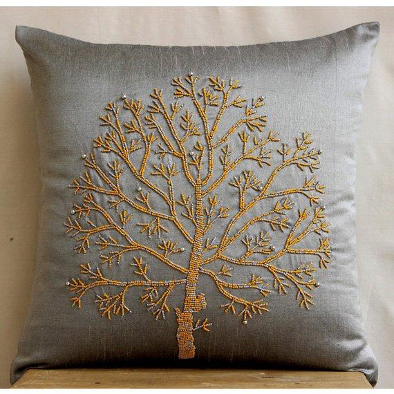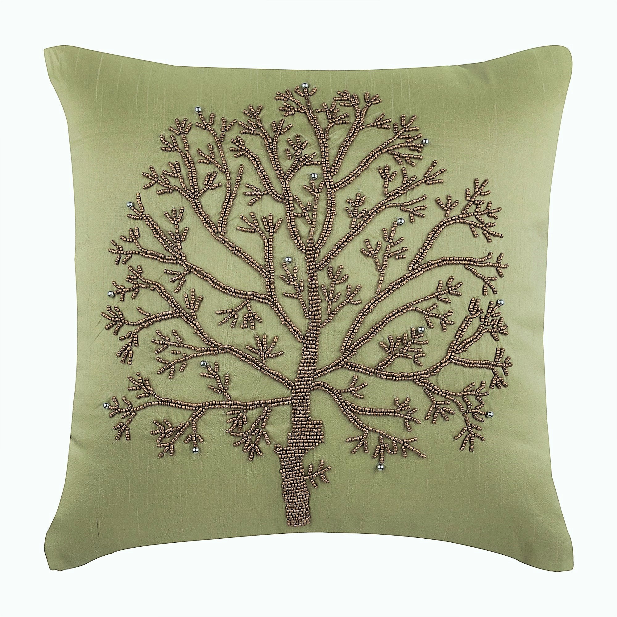 The embroidered tree with a few matching beads to represent fruits and flowers reveals skilled craftsmanship. The Tree Of Faith is a modern euro sham and is available in 5 different shades - silver gray, apple green, black, fuchsia pink and silver, with appropriate-colored beadwork to complement the fabric color.