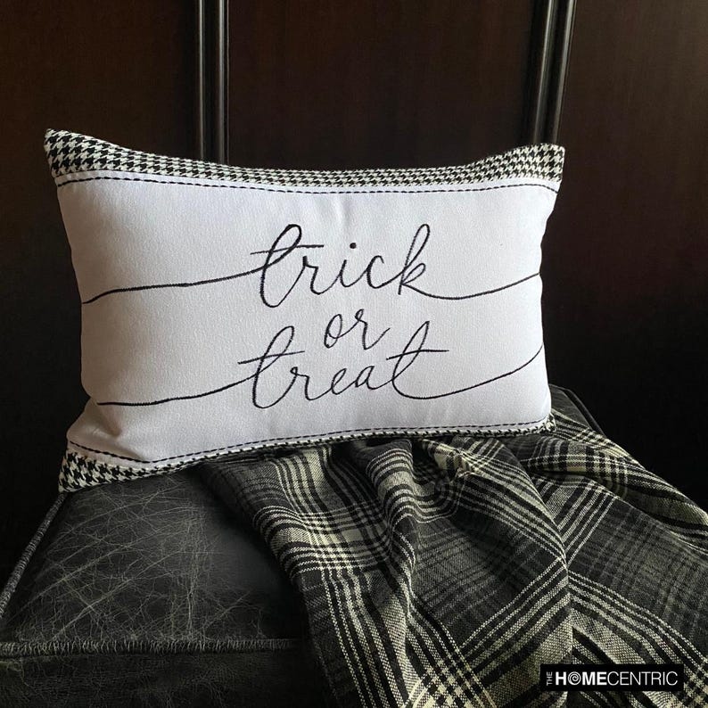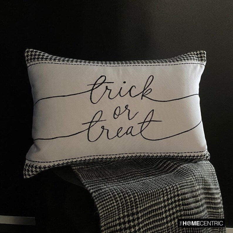 Pattern: Houndstooth Pattern with Embroidered "Trick or Treat"
