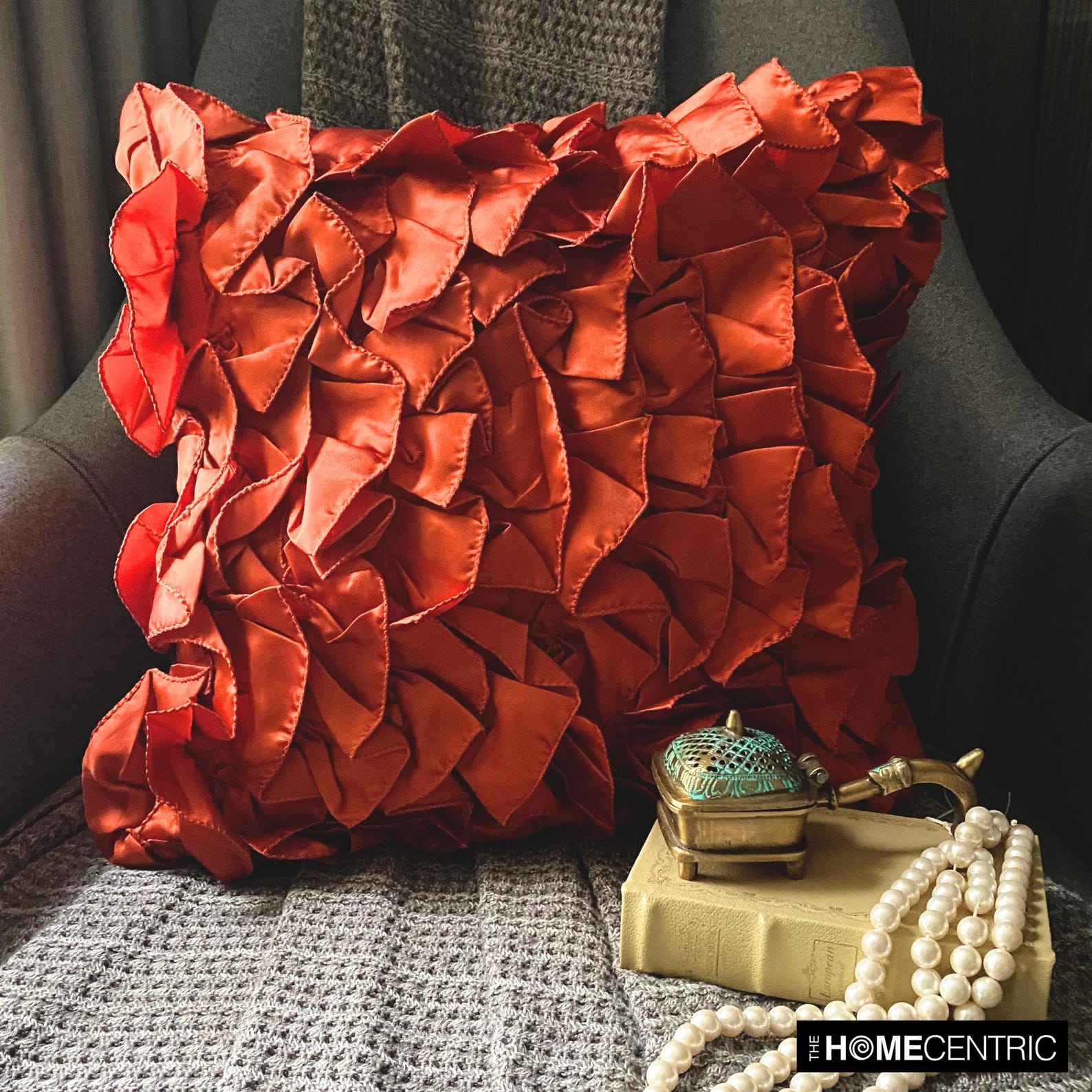 Handcrafted by Indian artisans, the square pillow exhibits an exquisite design of soft and delicate ruffles that bring a classic feel to the ambiance. Reminisce the old and gold vintage style that flattered everybody. | Carefully designed with intricate detailing, the pillow cover features a perfect combination of satin and ruffles. Available in multiple shades, the pillowcase exhibits an aesthetic appeal in each color. |