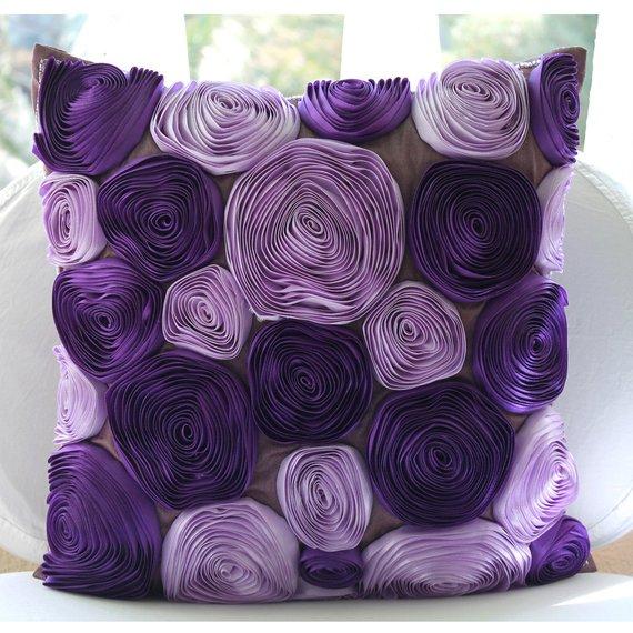 Inspired from nature, the Violet Blooms is a beautiful euro sham that will create a striking effect when placed with neutral-colored pillows. It is embellished with ribbon embroidery, which resembles flowers. These flowers on the pillow come in different sizes. The design will ooze plenty of charm when placed on the couch, bed, or a vintage chair. | The euro sham is made from fine quality art silk. This material is light and airy. The combination of art silk and the embroidered ribbon flowers is a match made in heaven. This designer euro sham is handmade in India by the best artisans and comes in 8 exciting colors. |