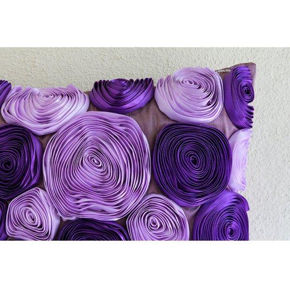 Violet Blooms is a floral purple euro sham and roses made with silk ribbons adorn the entire front of this silk decorative euro sham. Purple silk ribbon roses alternating with white silk ribbon roses make this purple euro sham an absolute visual delight. Place this purple euro sham in any space to instantly perk up your interiors with the least amount of effort. The back of this artistically designed and tailored flower euro sham in matching art silk fabric has a carefully concealed zipper flap for easy insertion and removal of inserts.
