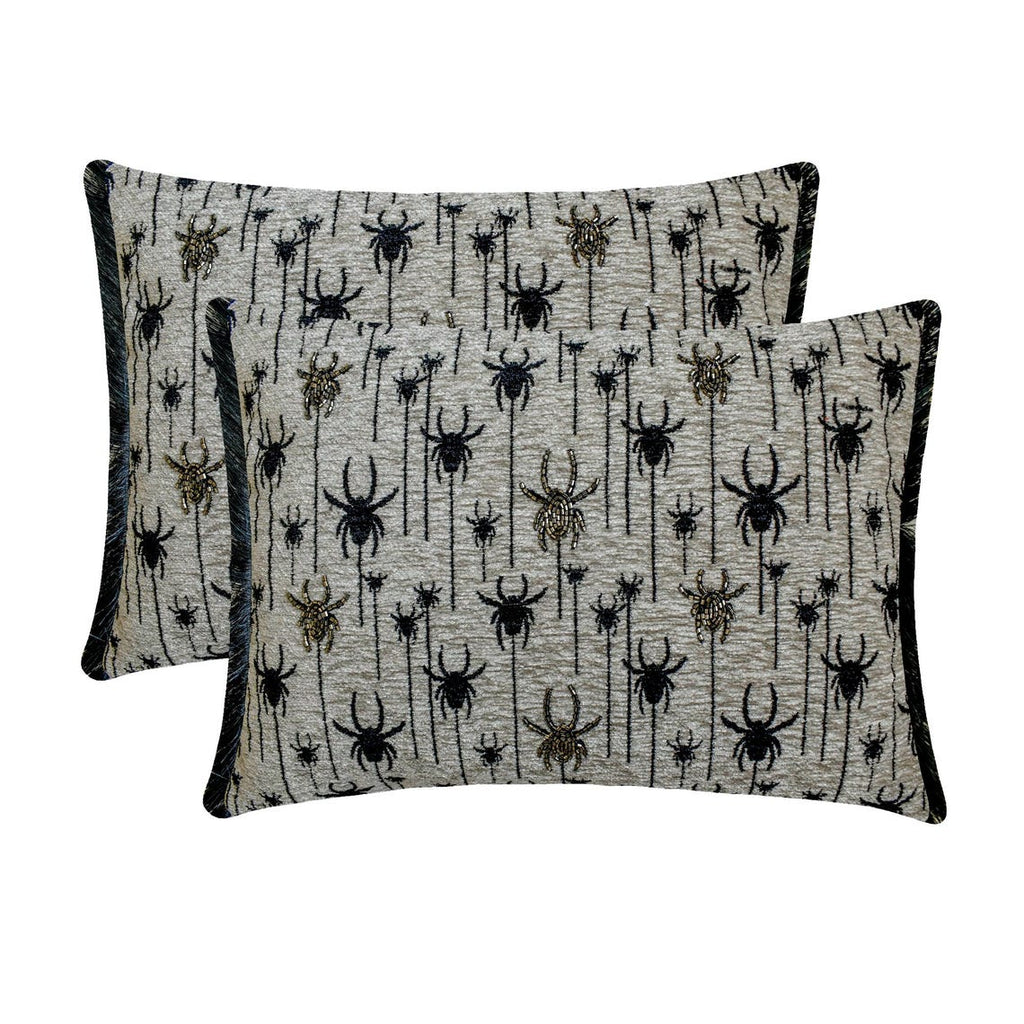 Add a touch of spooky elegance to your home with our Webbed Spiders Halloween pillow cover. Crafted from woven jacquard fabric, this pillow features a stunning spiders design for a gothic-inspired Halloween look. The intricate silver bead and lace embroidery details enhance its charm, making it a perfect addition to your seasonal decor. In classic black and ivory, this pillow cover pairs beautifully with any Halloween theme. Ideal as a Halloween gift or to complete your spooky home decor, it’s perfect for living rooms, bedrooms, and cozy nooks. Celebrate the season with style and flair!