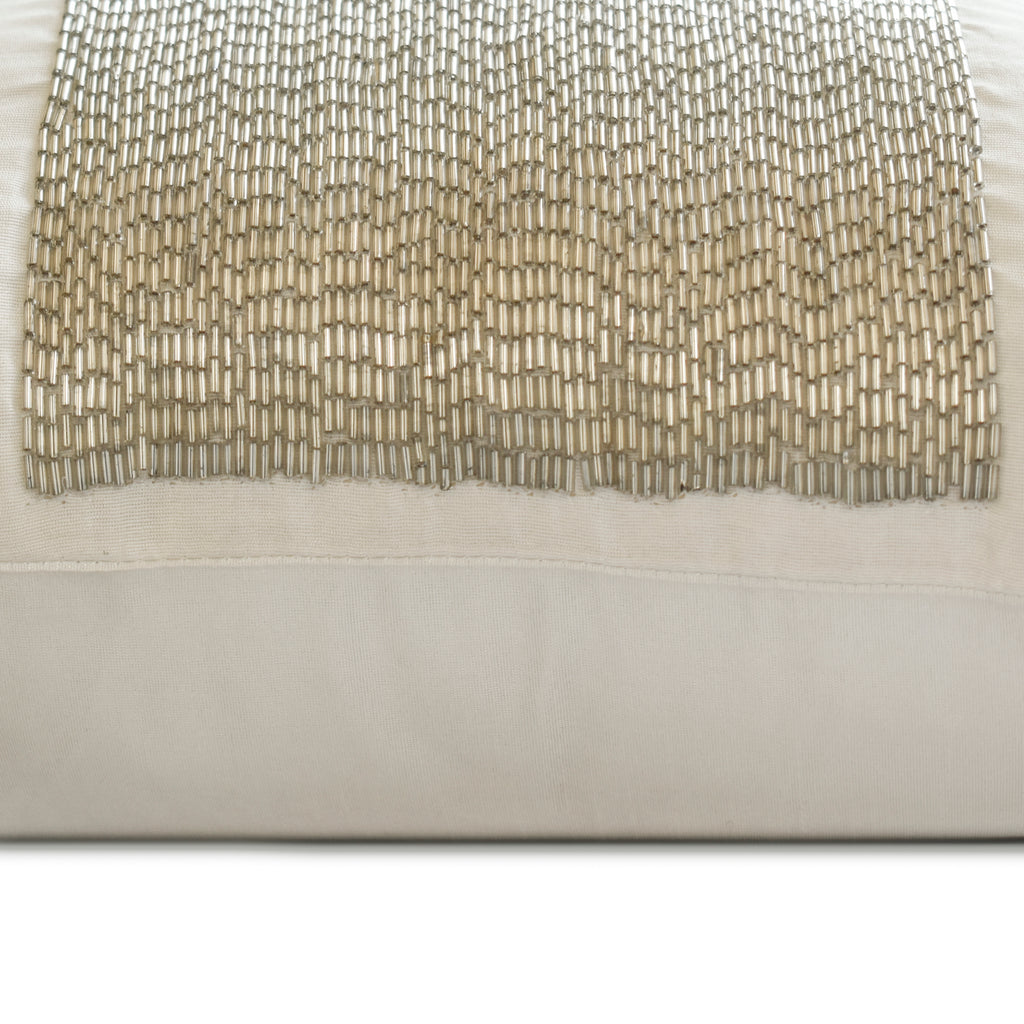 The sparkling bugle beads on this modern euro sham are perfect for glam-inspired homes. A thick center band on this euro sham with vertically arranged bugle beads makes this beautiful euro sham a must-have for your home or office décor. It has a sharp silhouette and is handcrafted by Indian artisans. | Exquisitely crafted in art silk, the euro sham is simply gorgeous. The combination of bugle beads and art silk is classic, and this modern euro sham reflects that in all its glory. Place this glamorous piece on the couch, chair, or bed to make a chic statement. It is available in multiple colors and sizes, so you can easily pick the ones that match your style. |